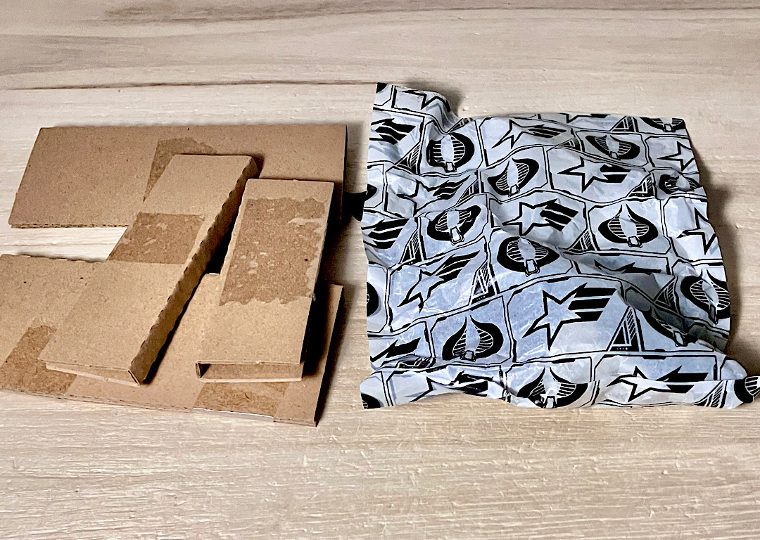 パッケージのプラ削減機運が最も高まっていた時期のアイテム。ご覧のようなコンテナ型ボックスが入っており、中には梱包用ボール紙と紙袋が。紙袋には各種アクセサリが封入されております。