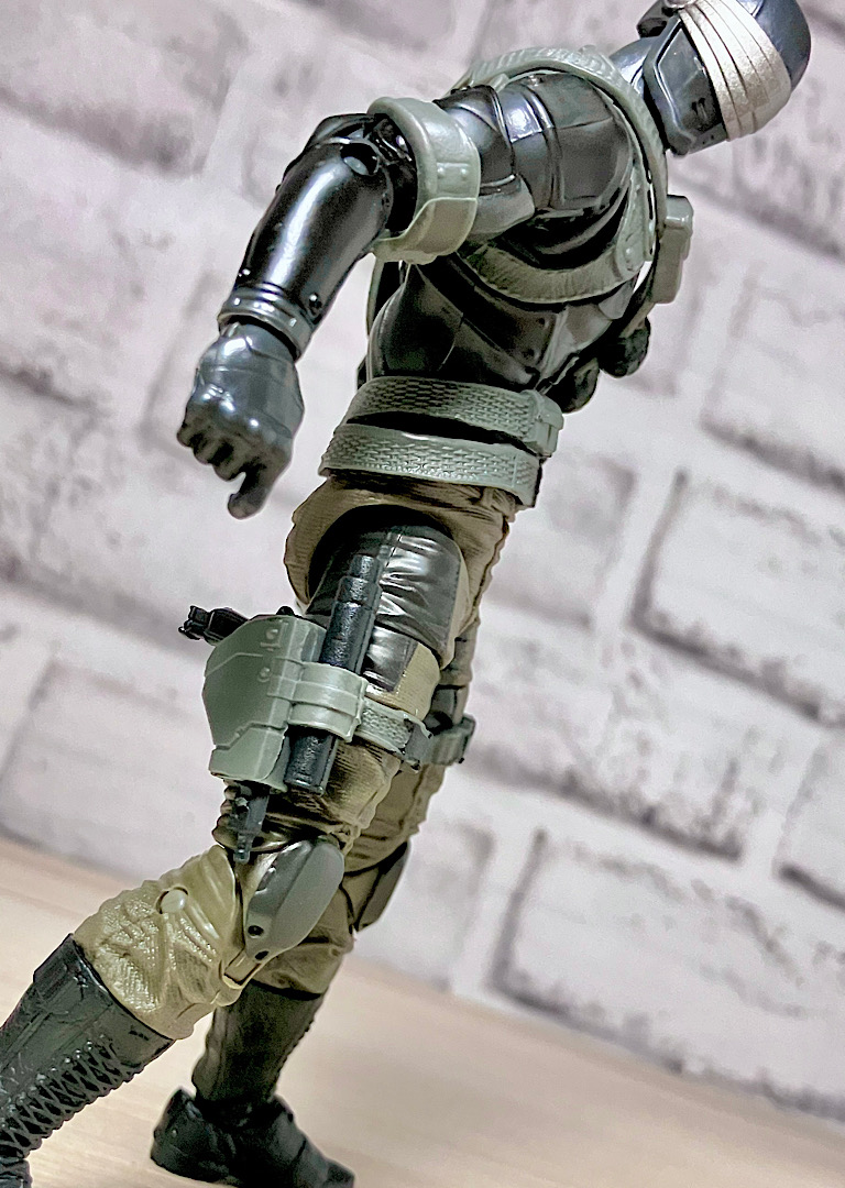 ハンドガンとサイレンサーは別々に右脚のホルダーに収納できます。
