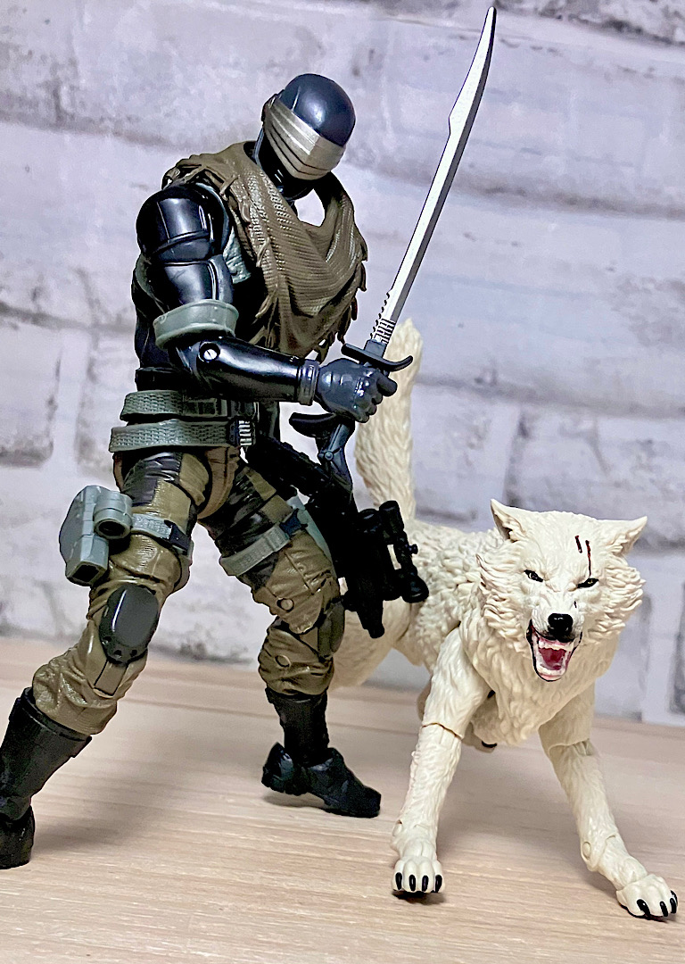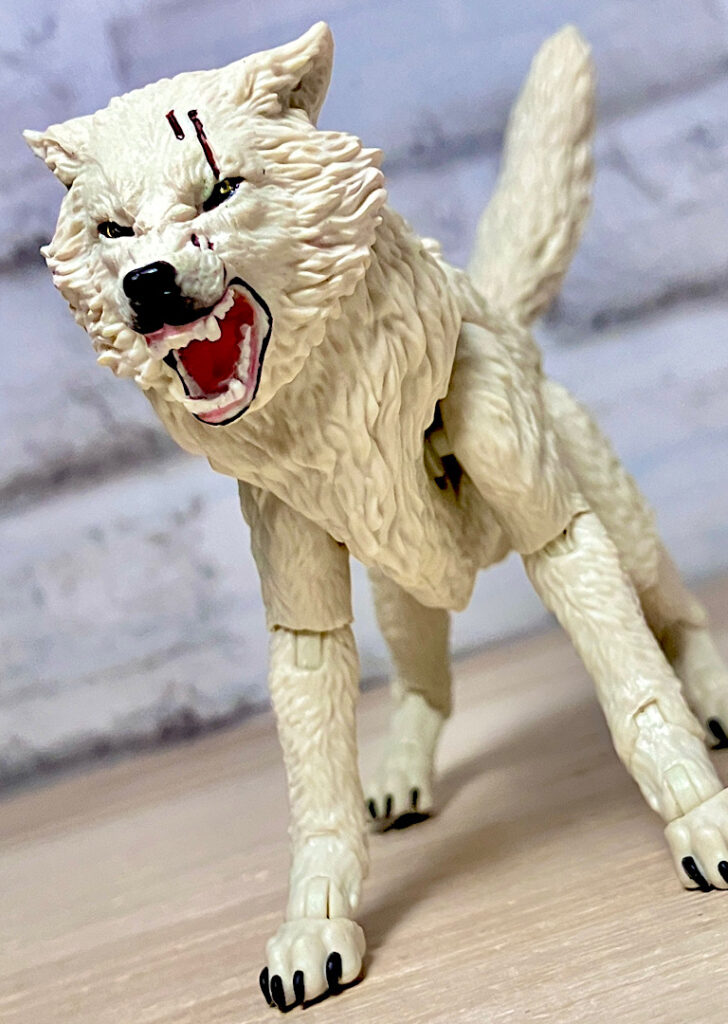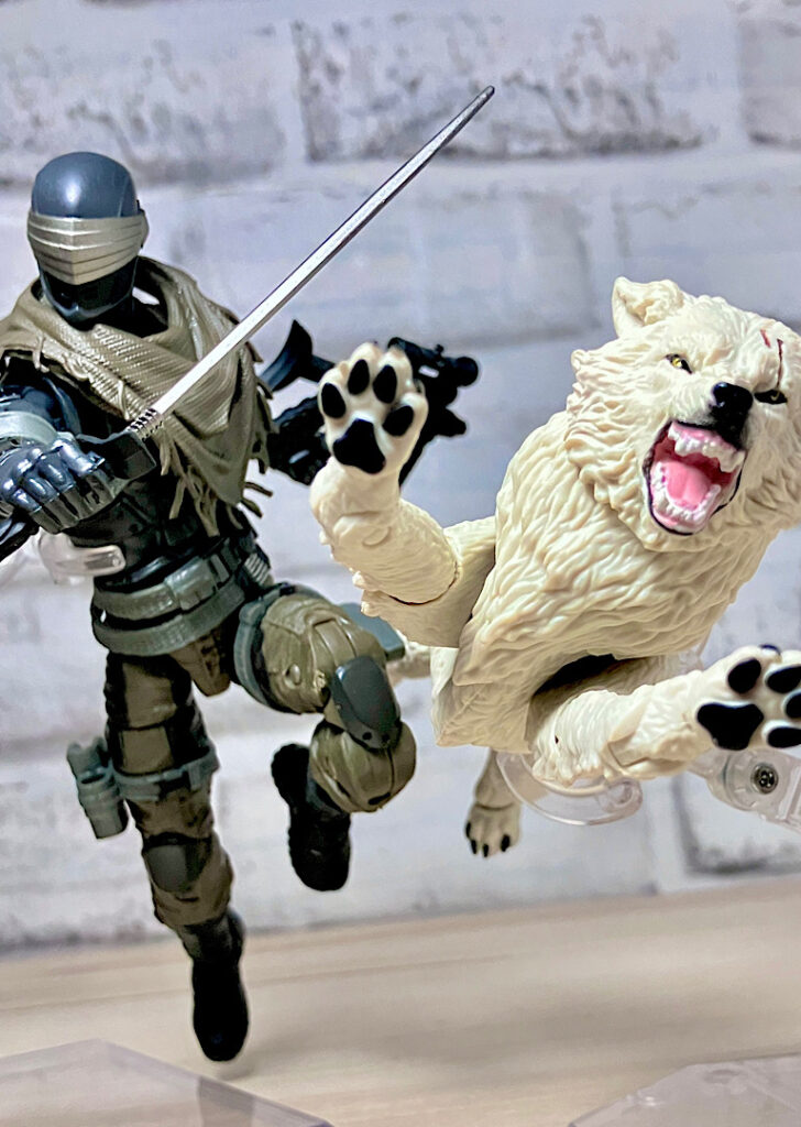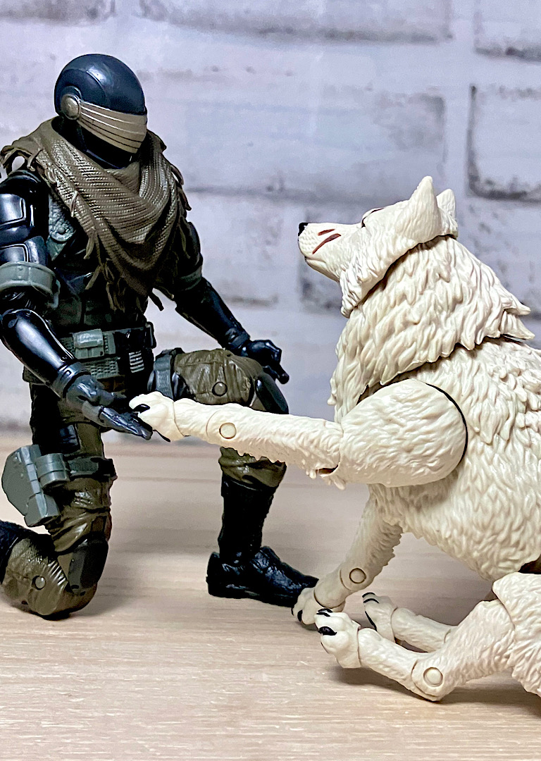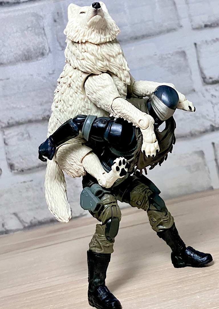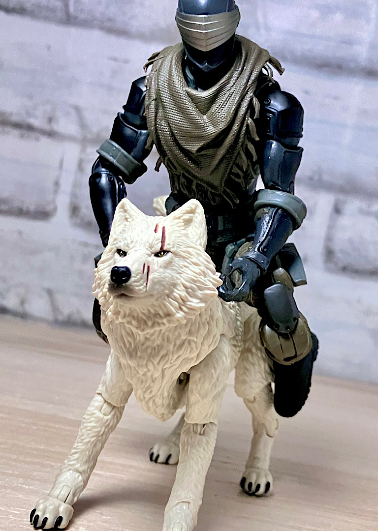 【ティンバー】野生のオオカミで、スネークアイズが心を許す数少ない親友の1人。アニメでは罠にかかったところをスネークアイズに救われて仲間になりました。クラシファイドシリーズでは2度目の立体化で、前回は体毛がシルバーでしたが、今回は白。冬毛ということでいいのかな?