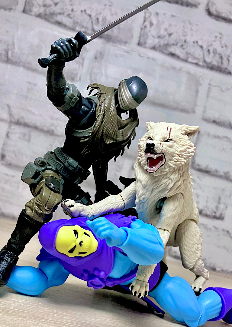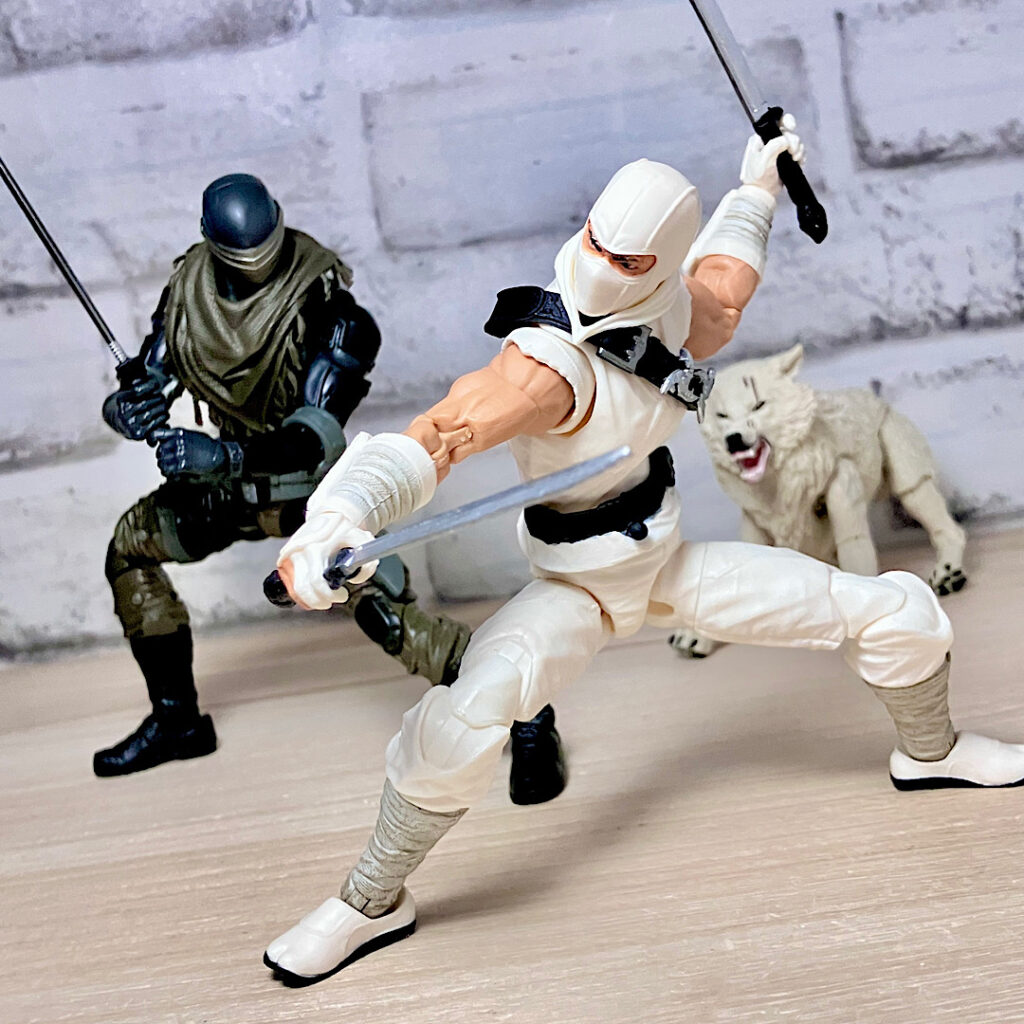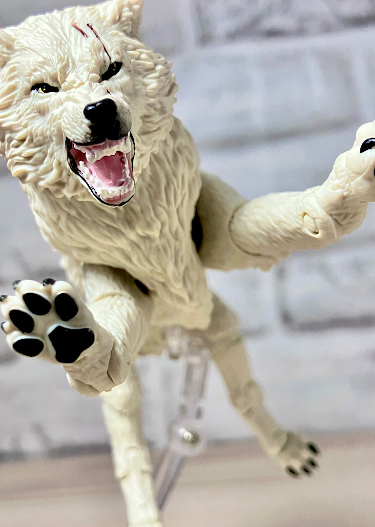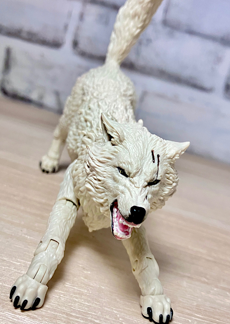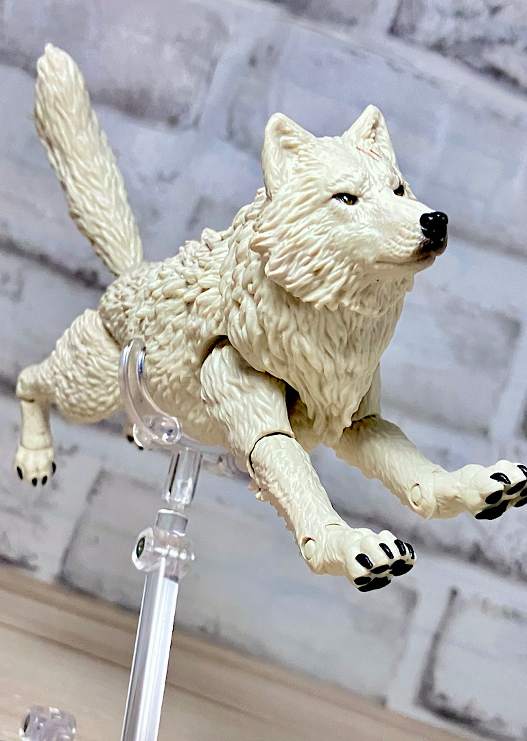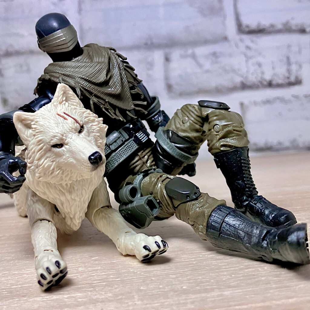 【ティンバー】野生のオオカミで、スネークアイズが心を許す数少ない親友の1人。アニメでは罠にかかったところをスネークアイズに救われて仲間になりました。クラシファイドシリーズでは2度目の立体化で、前回は体毛がシルバーでしたが、今回は白。冬毛ということでいいのかな?