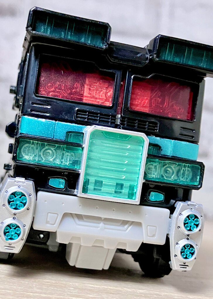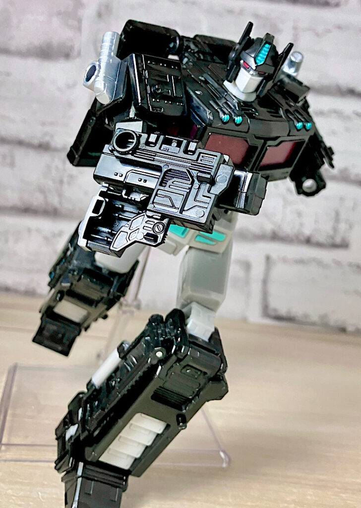 【ロボットモード】シージオプをおなじみネメシスカラーにリカラー。シージ期では非常に珍しい日本主導アイテムで、タカラトミーモール限定でした。黒と若竹色のバランスが良いクールな逸品です。