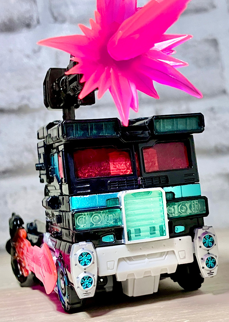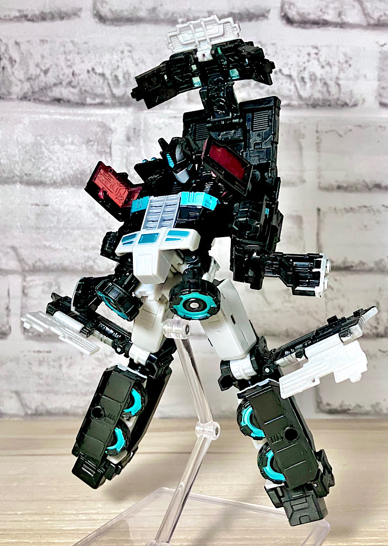 【ロボットモード】こちらはNetflixアニメシリーズに合わせてリリースされたWFCトリロジーバージョン。シージ版とはペイントパターンが細かく違うほか、付属品が大幅に異なります。