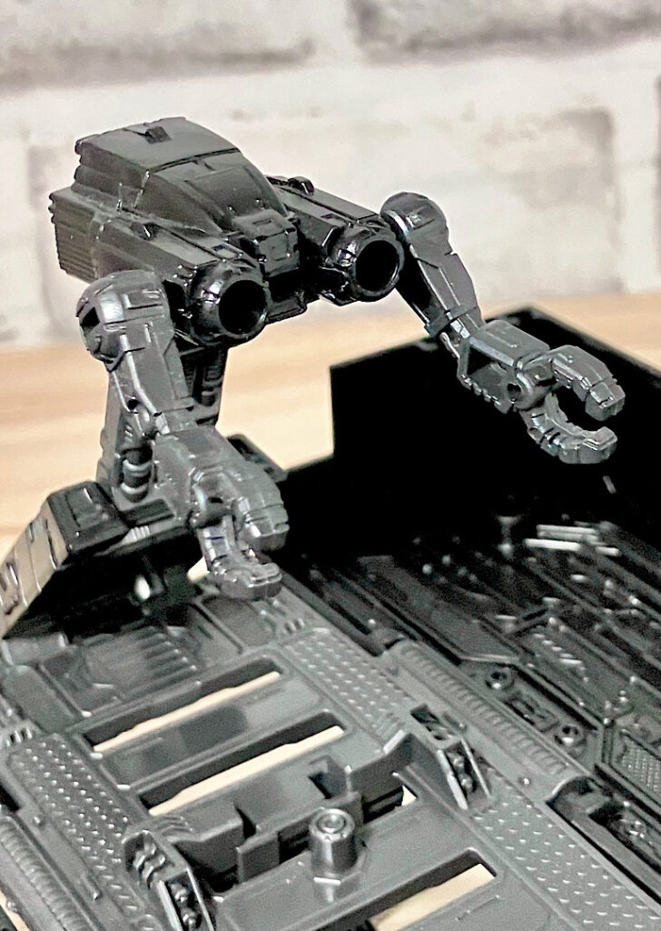 【変形】次回作のERオプティマスも傑作なのですが、それにつながるなかなかの快作。ビークルのルーフの中にパネルがたたまれており、それを広げたりたたんだりすることでロボとビークルのデザインの矛盾点を解消しています。そして工程数も多めで適度な手応えを感じられます。