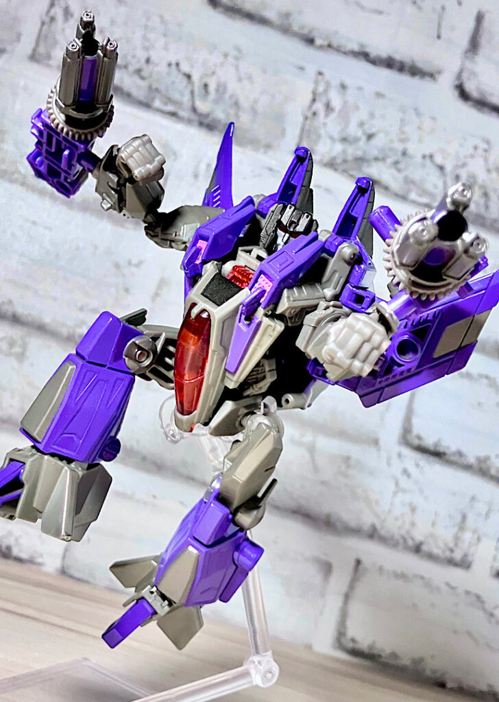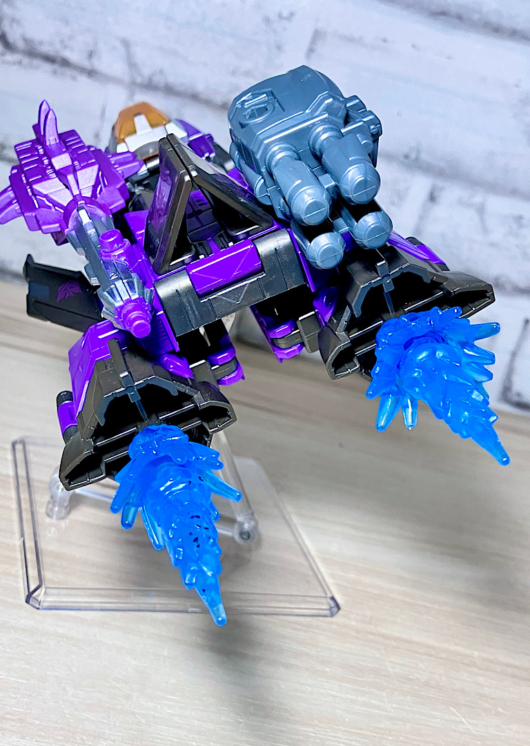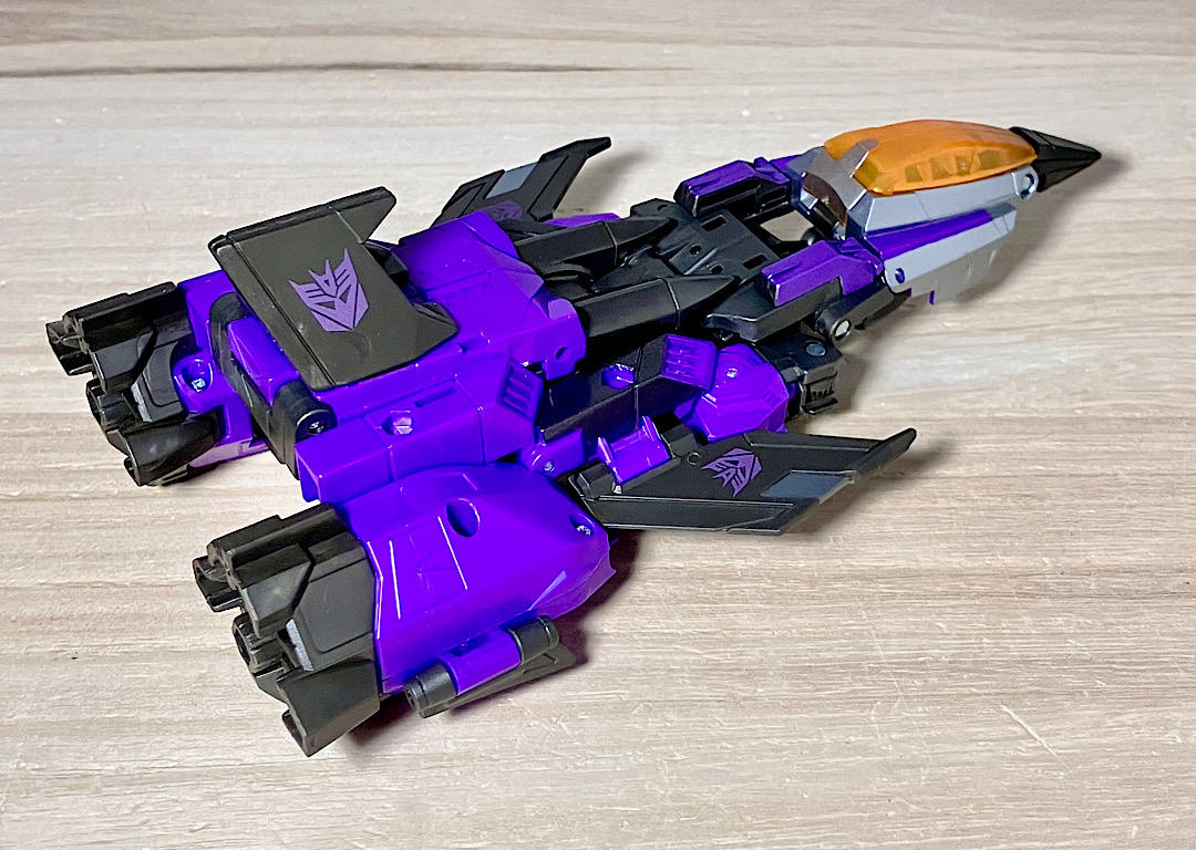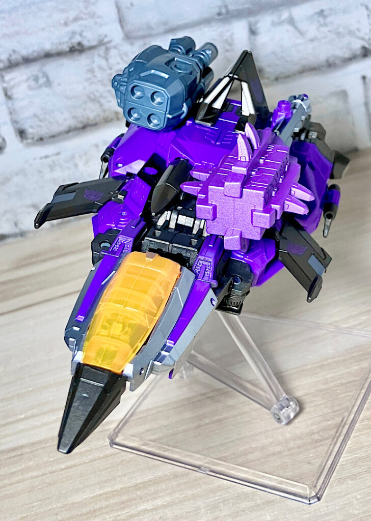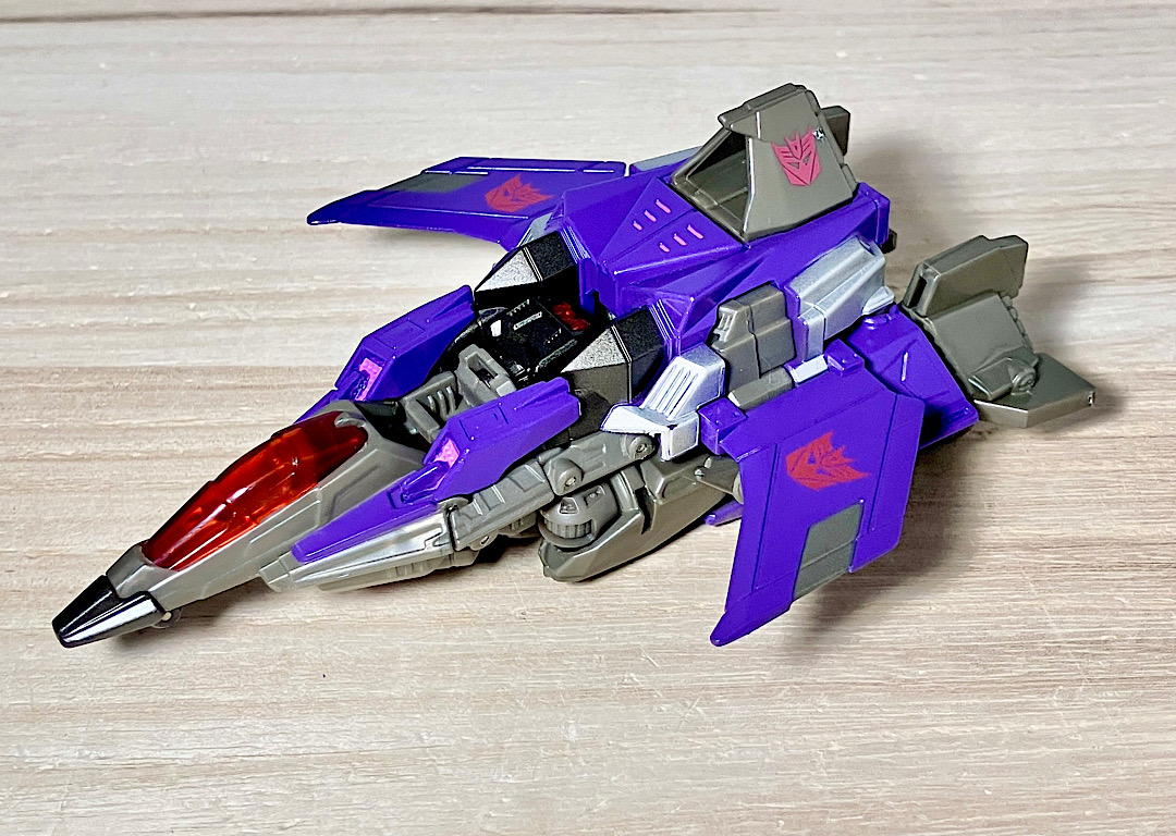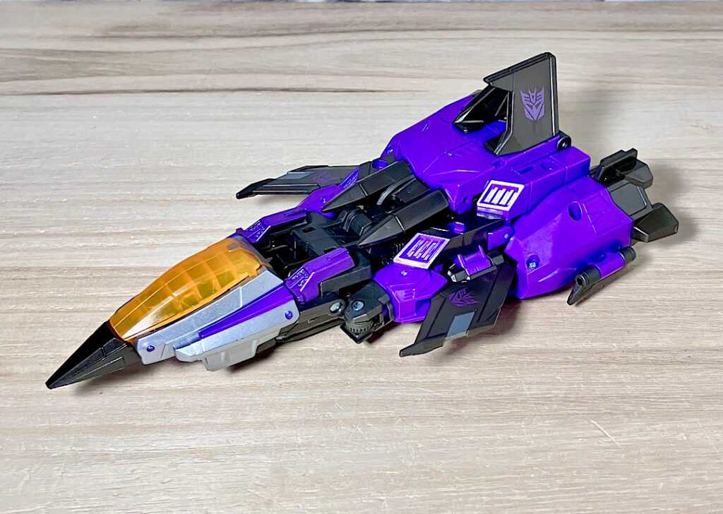 【変形】可もなく不可もなくといった印象。垂直尾翼を回転させてビークル時は三角に、ロボ時は外開きにできるのは、旧ジェネレーション版からの進化ポイント。