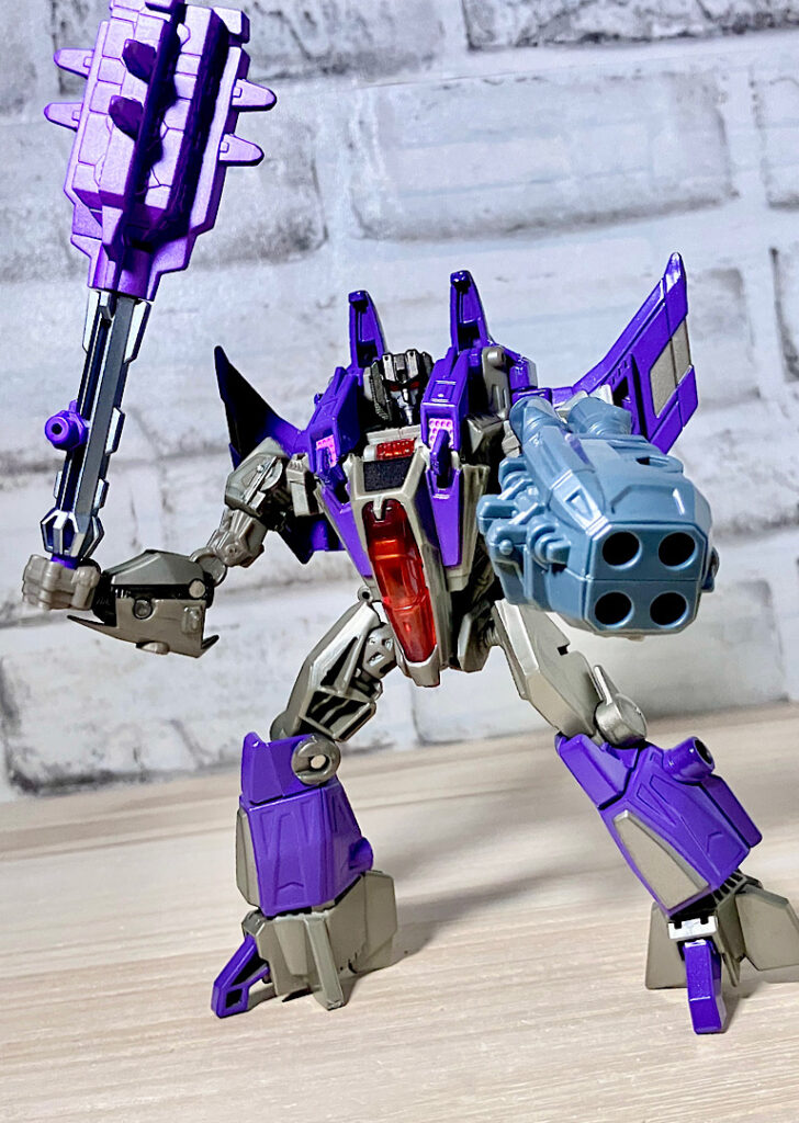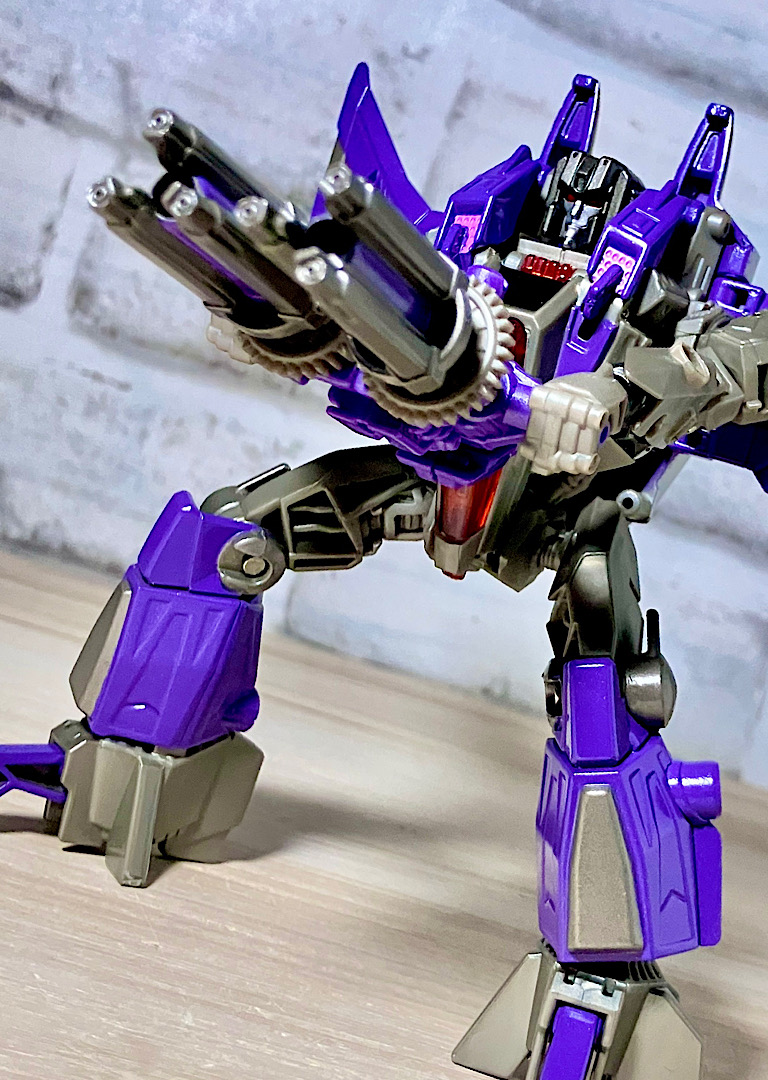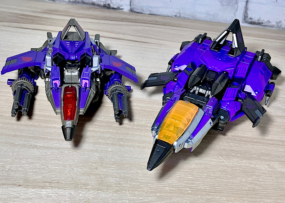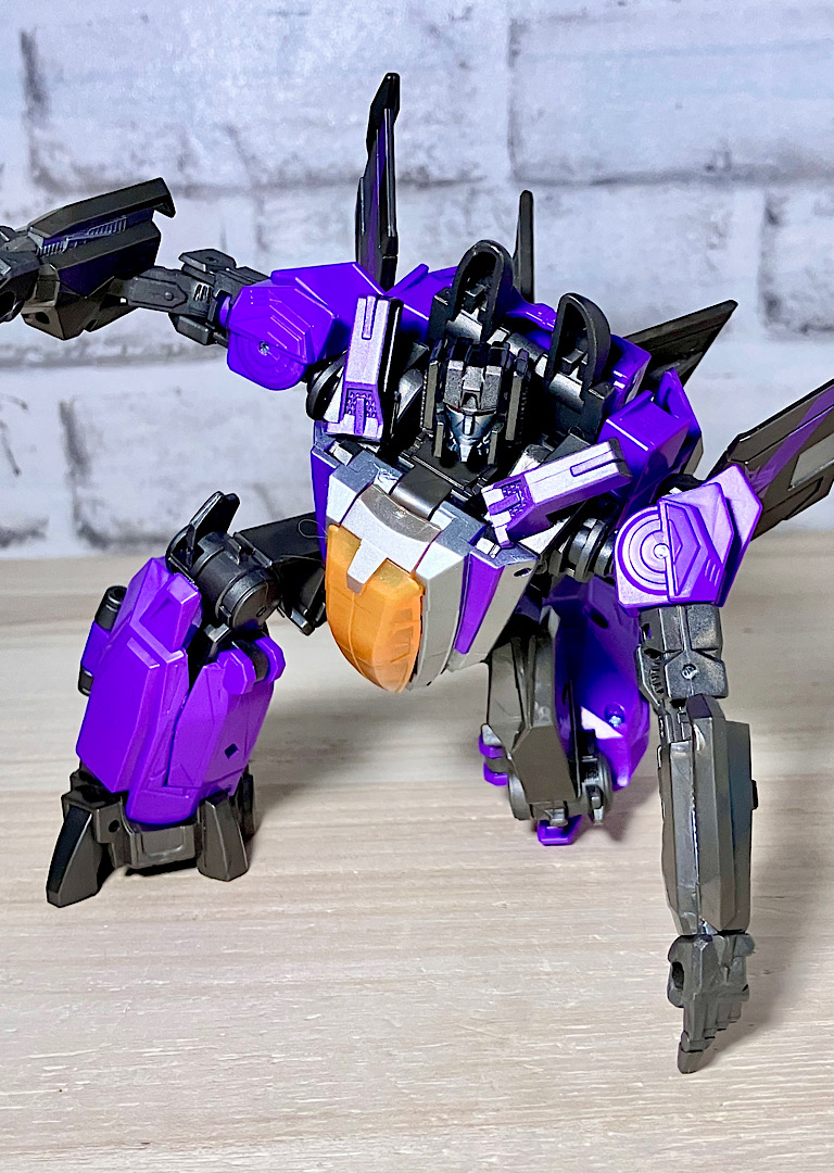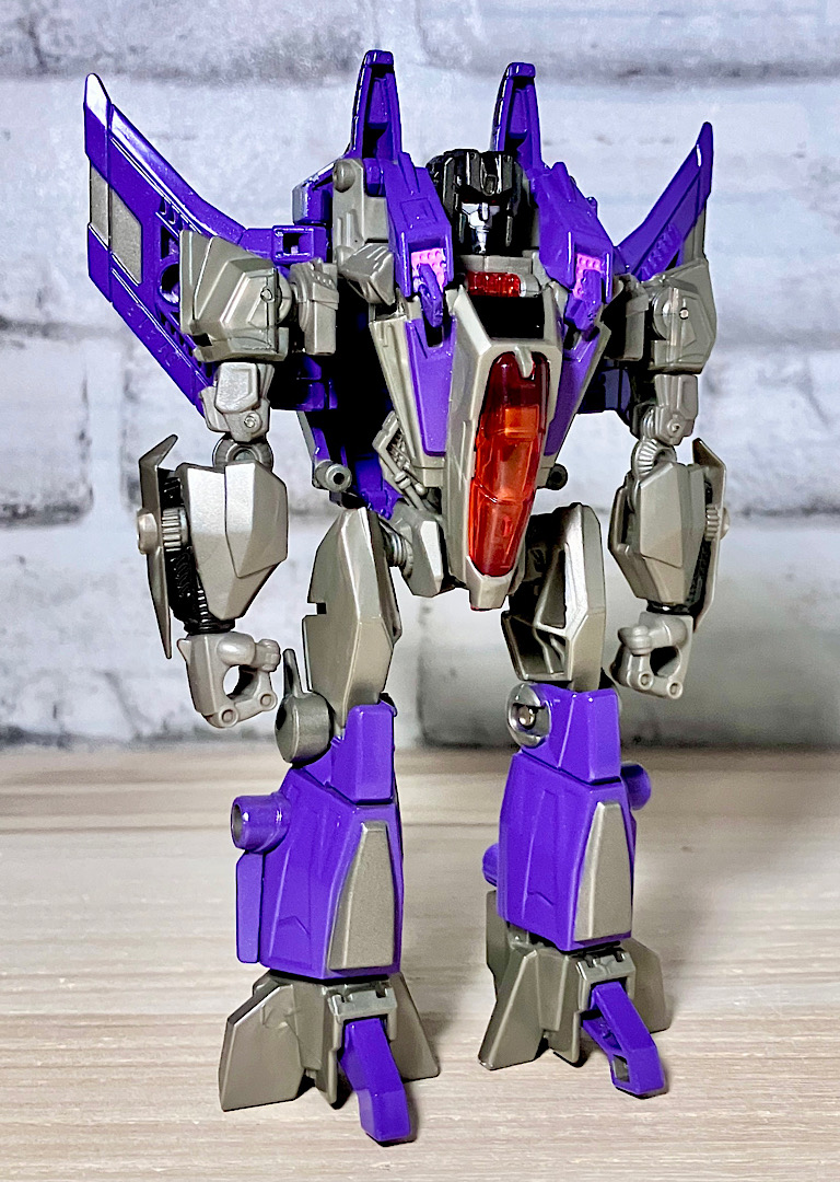 【変形】可もなく不可もなくといった印象。垂直尾翼を回転させてビークル時は三角に、ロボ時は外開きにできるのは、旧ジェネレーション版からの進化ポイント。