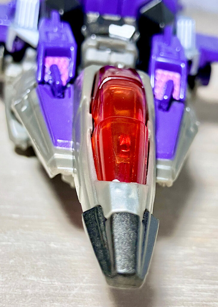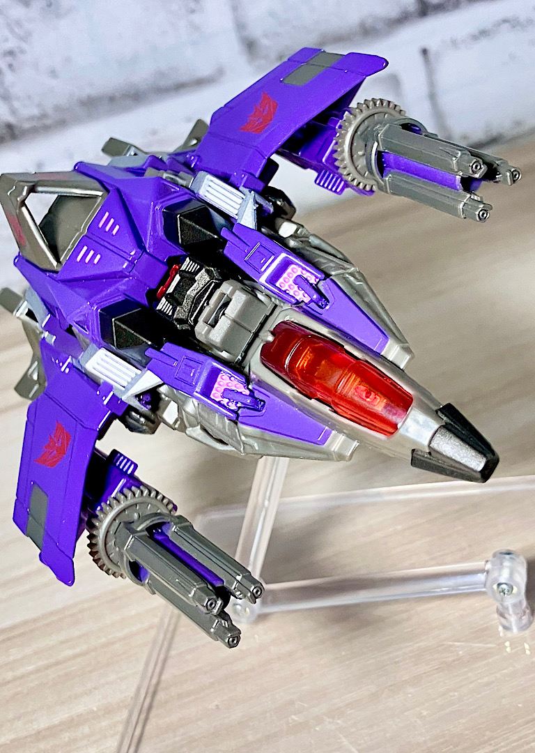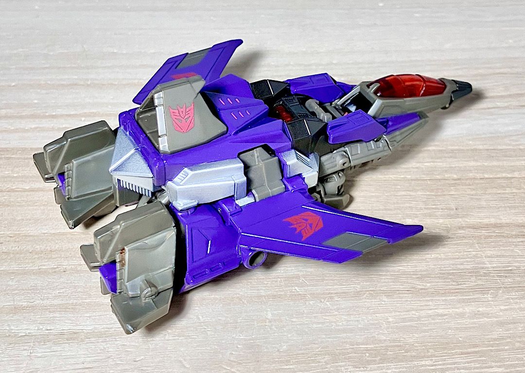 【ビークルモード】サイバトロンSFジェットに変形。なんかウィングが小さくてジェット機っぽくないし、全体的にディフォルメされている印象。ウィングは劇中でももう少し大きかったんじゃないかな?