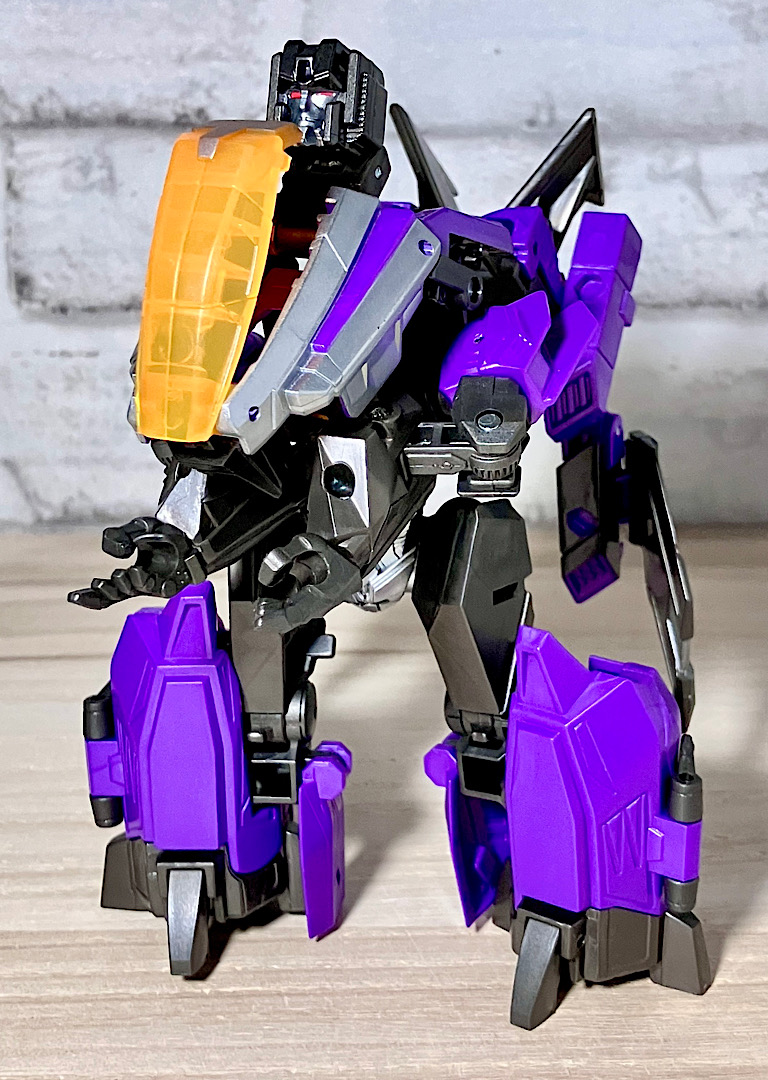 ゲーム内ではほとんど後ろ姿しか映らないのですが、それでもこのキャノピーは大きすぎて違和感がありますね。ロボモード優先でビークルにしわ寄せが来ている感じ。