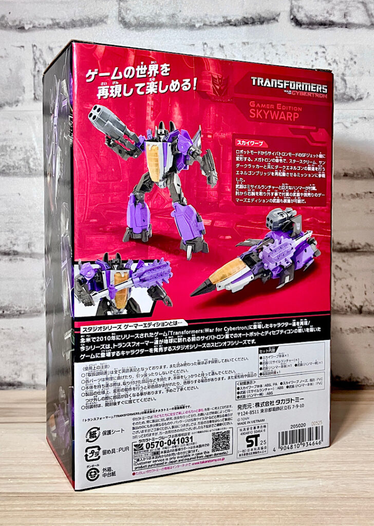 さて今回はスタジオシリーズのスピンオフ・ゲーマーエディション(GE)から、スカイワープを紹介します。GEはTVゲーム『War For Cybertron』(WFC)に取材した新シリーズ。商品番号も01から仕切り直しとなりました。早速見ていくことにしましょう。