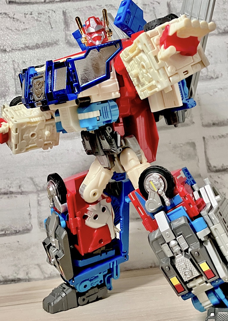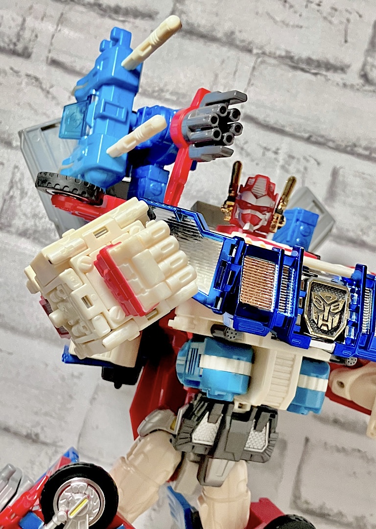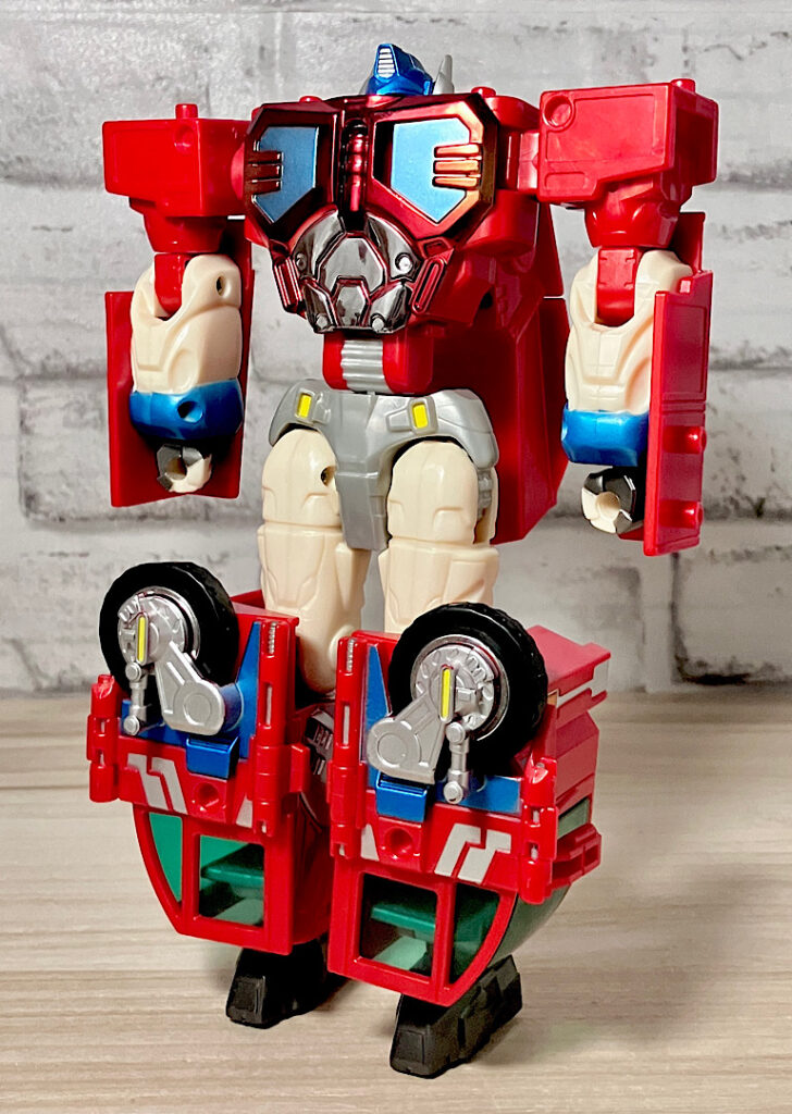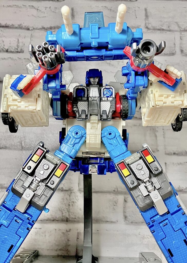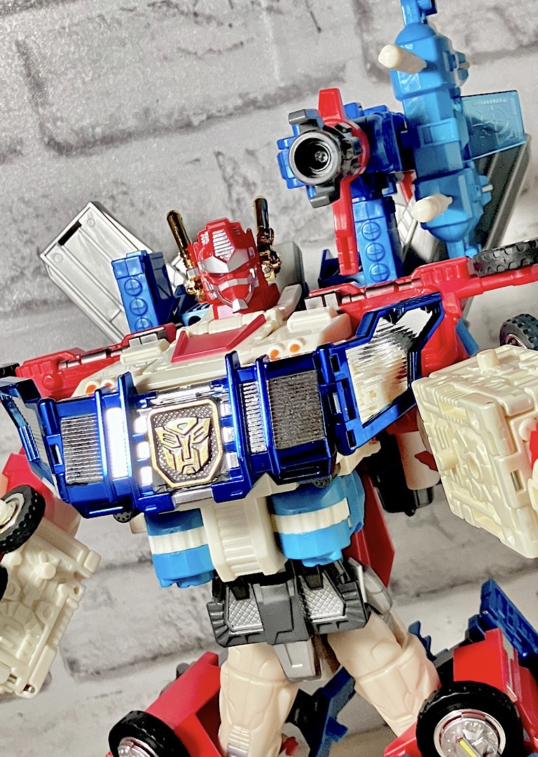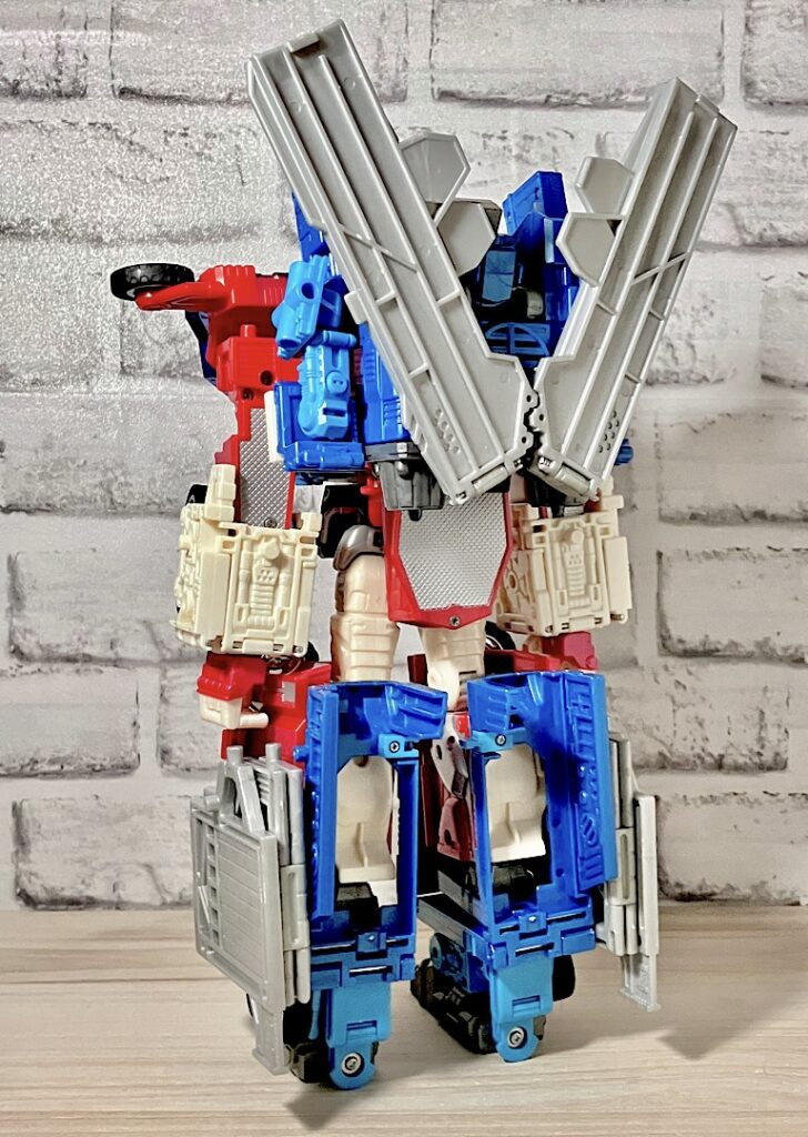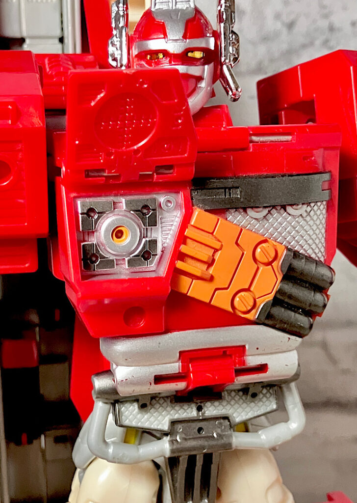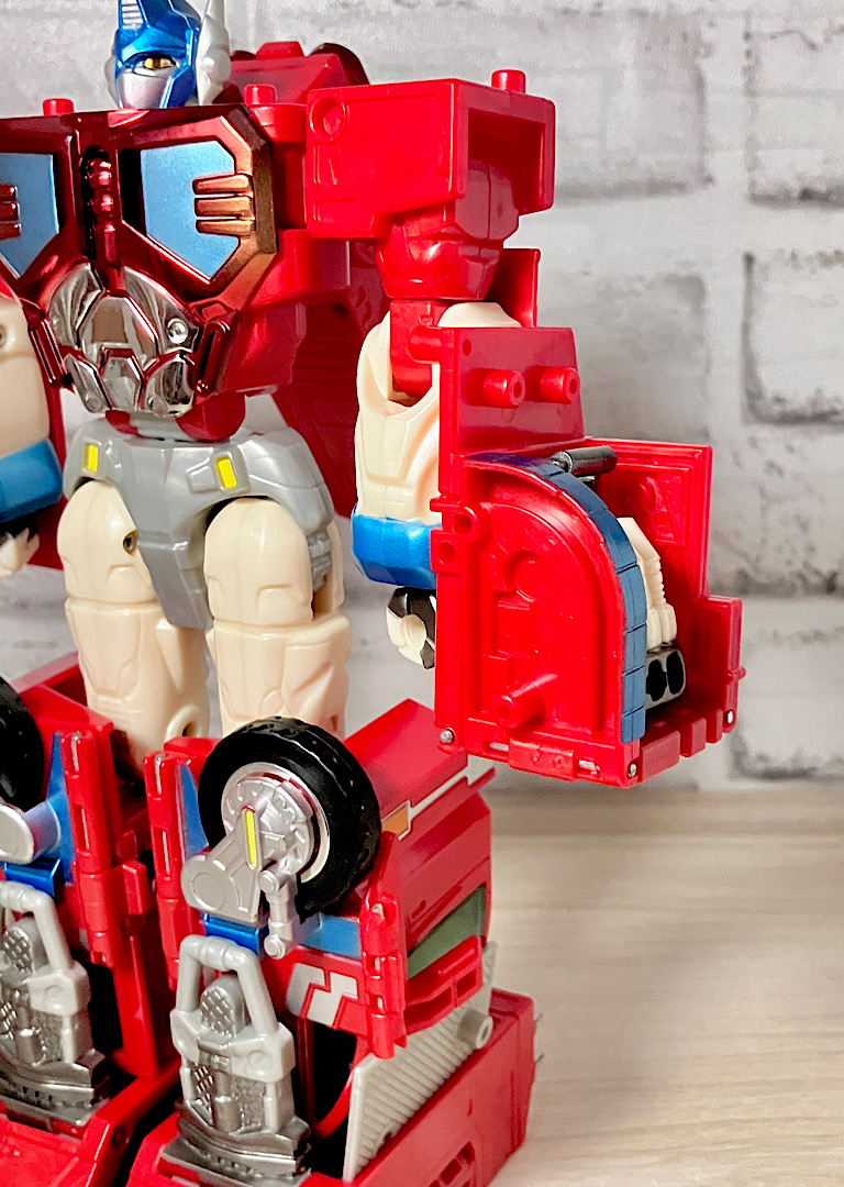 【ビークルモード】サイバトロンの熱血司令官。初めての消防車モチーフのコンボイ(オプ)で、後年にも影響を与えました。ビークルモードはサイズも大きくボリュームたっぷり。ただしパーツ同士の接続が甘くてポロポロ外れやすいのがちょっとストレスポイント。