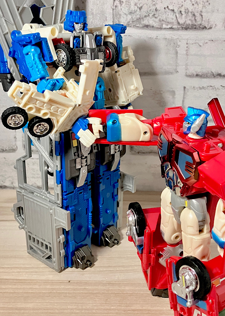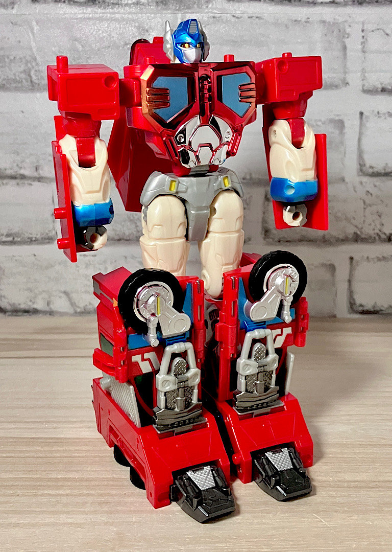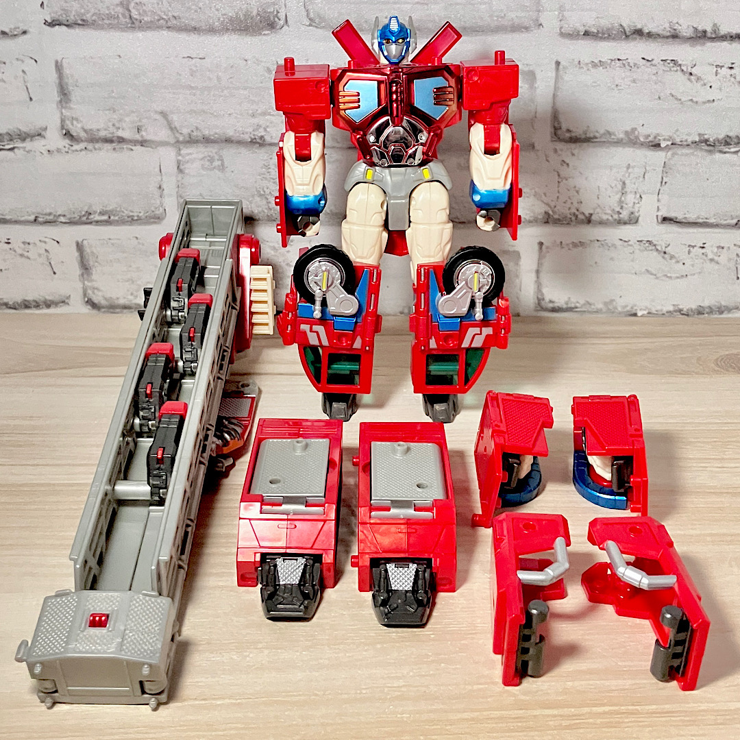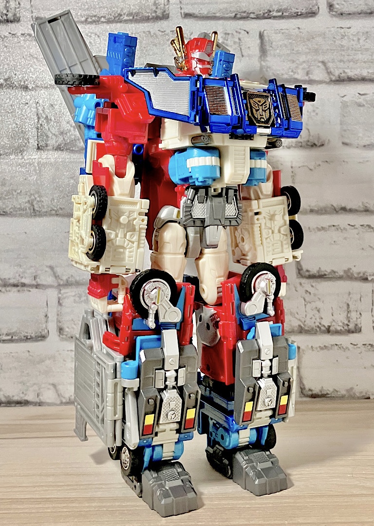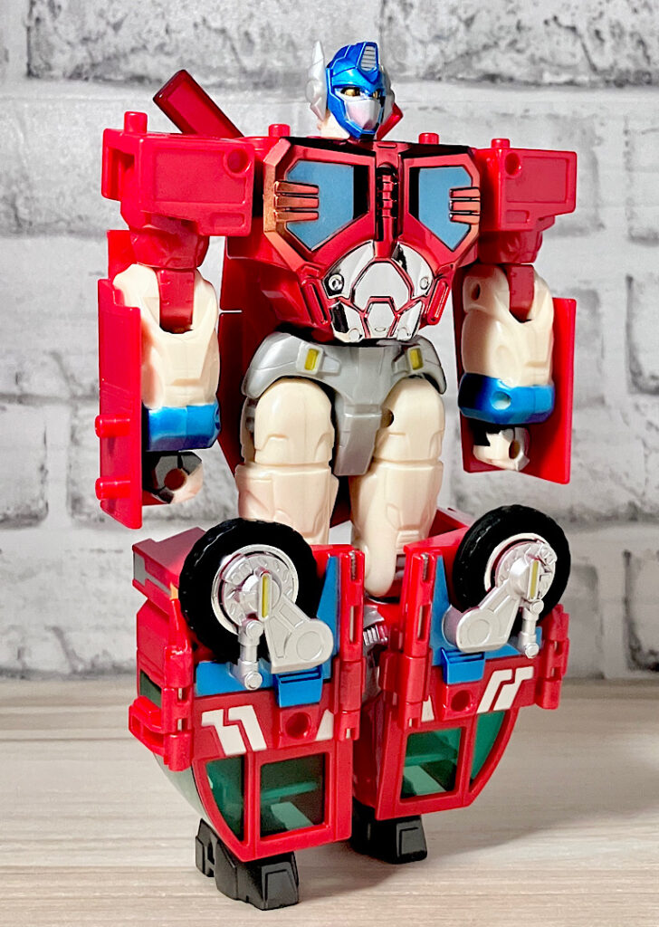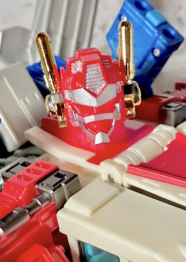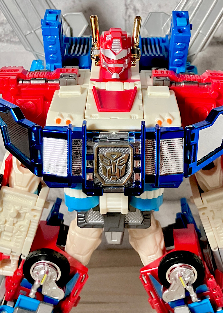 【ビークルモード】サイバトロンの熱血司令官。初めての消防車モチーフのコンボイ(オプ)で、後年にも影響を与えました。ビークルモードはサイズも大きくボリュームたっぷり。ただしパーツ同士の接続が甘くてポロポロ外れやすいのがちょっとストレスポイント。
