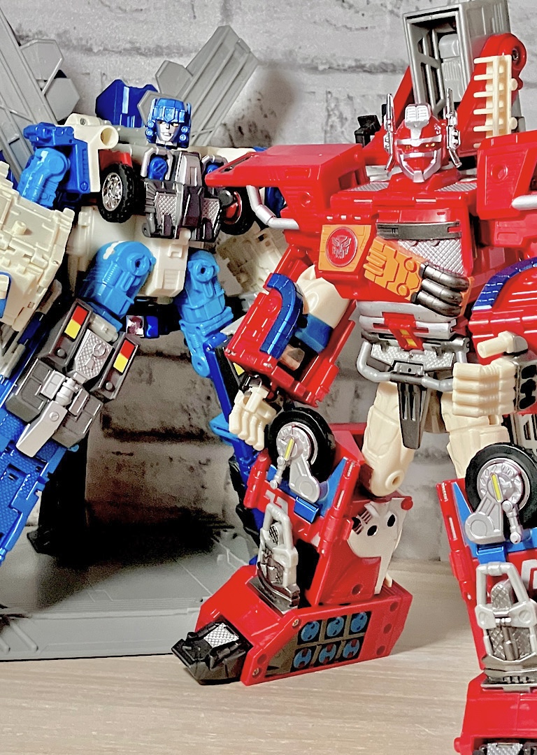 レガシー版とそれぞれ比較。新しい方が当然ブラッシュアップされているとはいえ、当時品の完成度がいかに高かったかがよくわかります。ビーストウォーズ大ブームの余波で、TFというブランド自体に脂が乗っていたんでしょう。