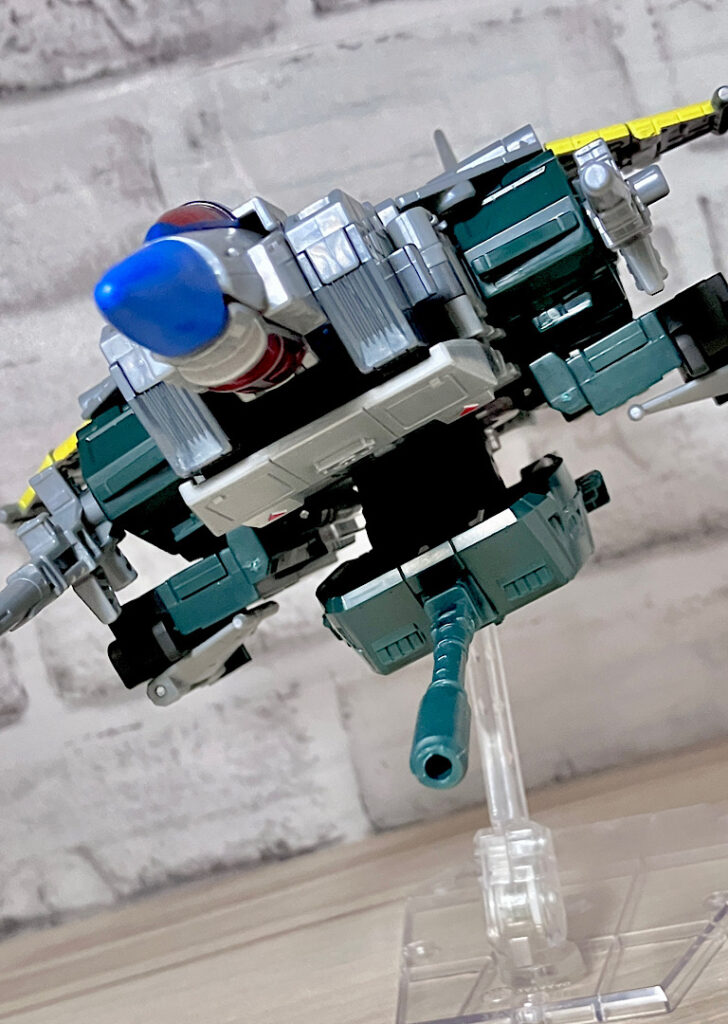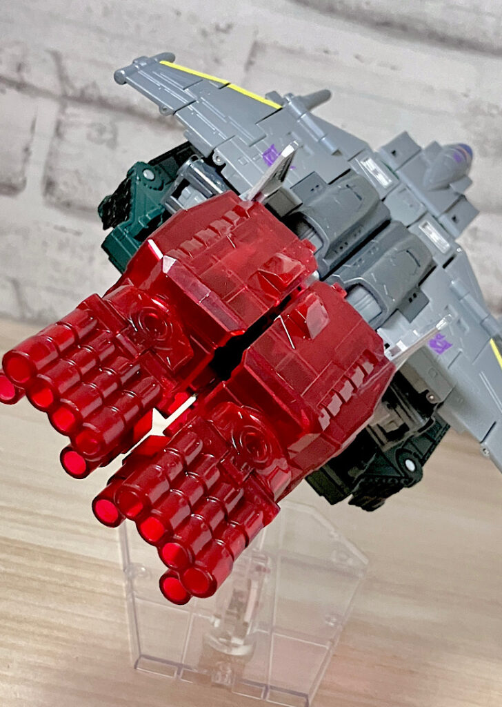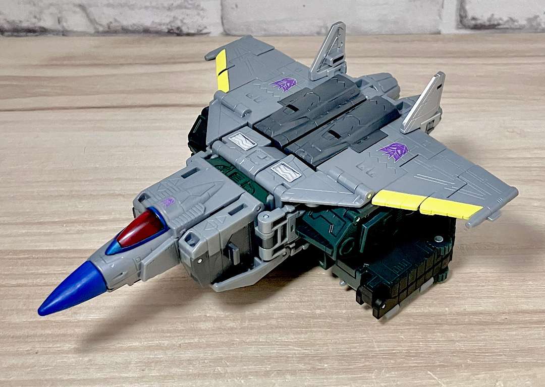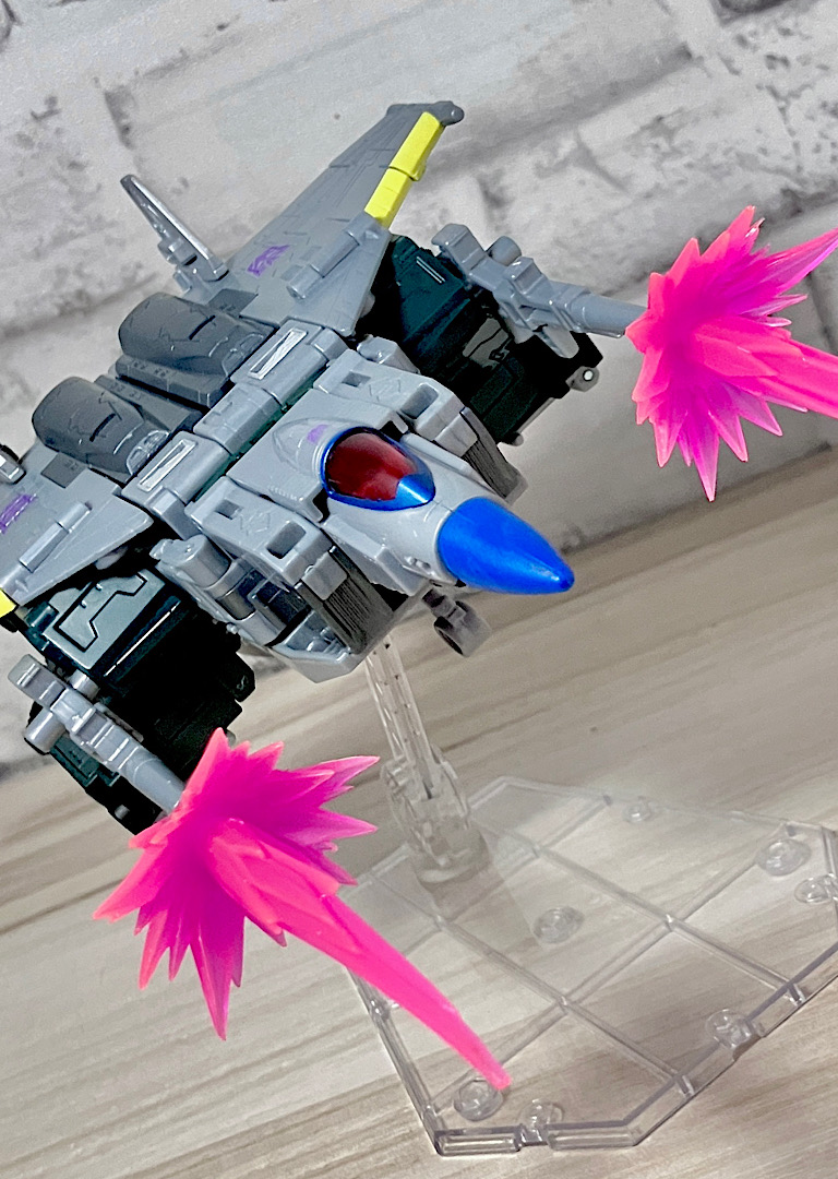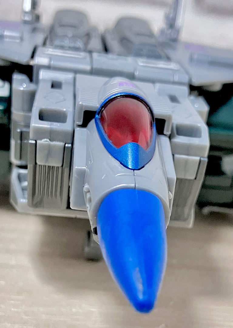 ジェット機にしては厚ぼったいボディが逆にトリプルチェンジャーらしくて好きです。キャノピーはクリアパーツ。