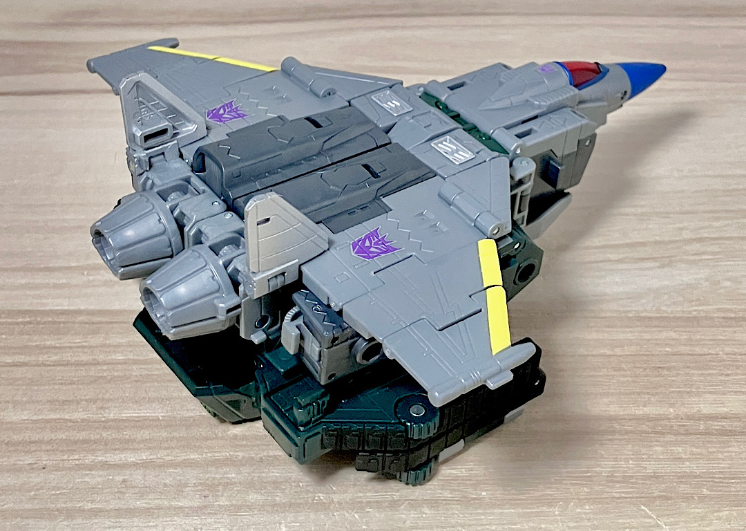 【ビークルモード1】トリプルチェンジャーなのでビークルモードは2つ。ひとつめはジェット機です。カラーはグレーが全面的に表面になるように設計されています。