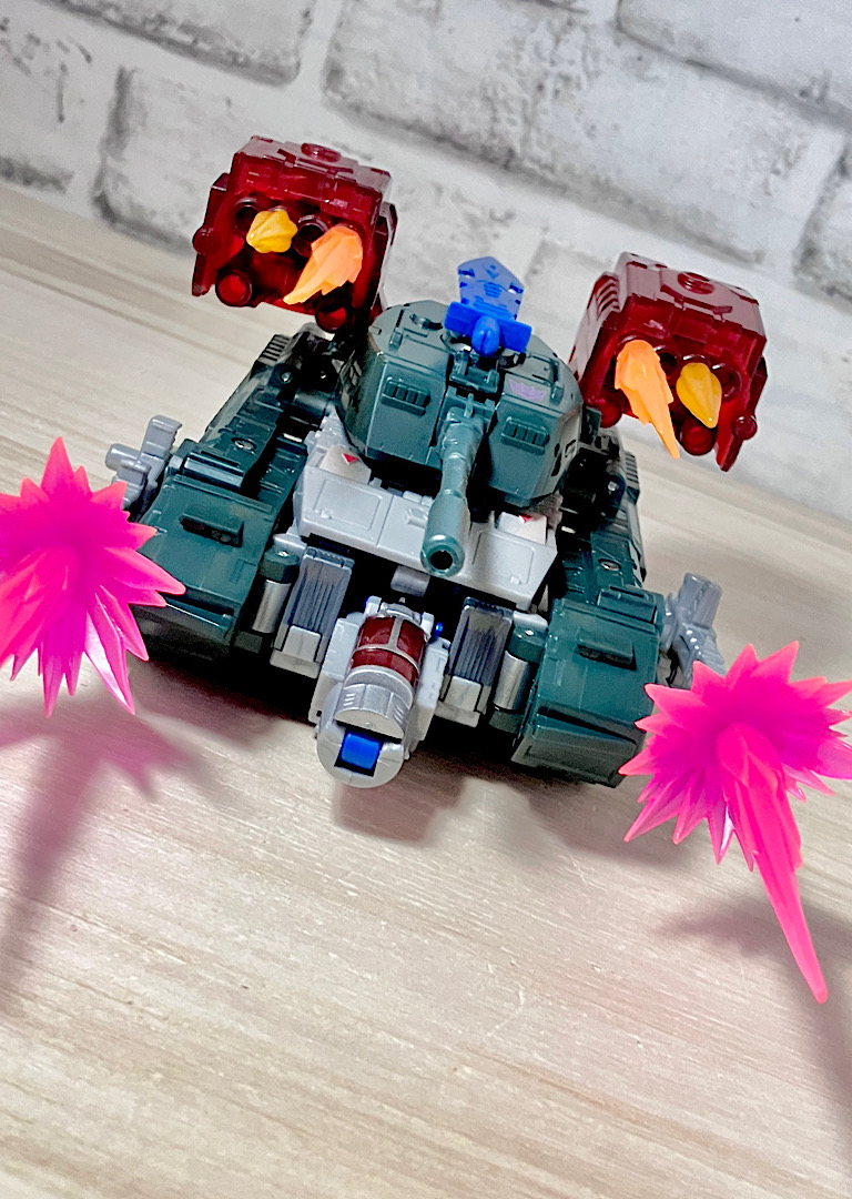底部をちょっとだけ変形させて、砲塔を出すとさらにカッコいいんですよね。TFならではの凶悪な兵器に早変わりです。