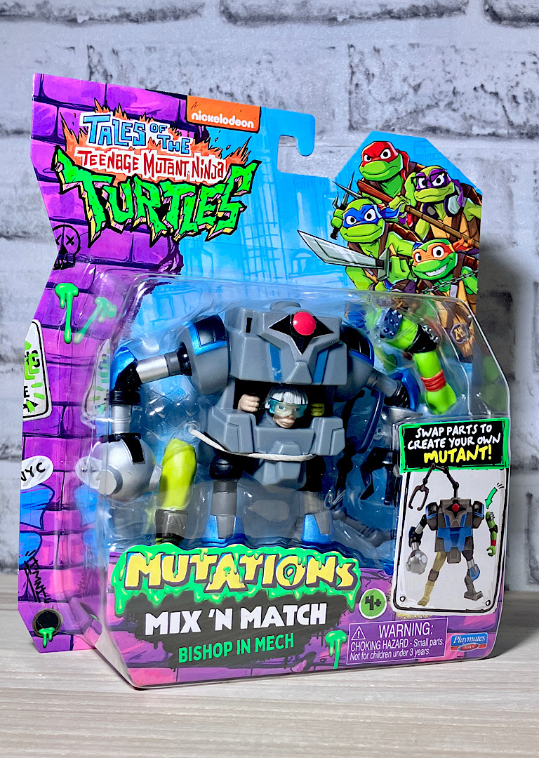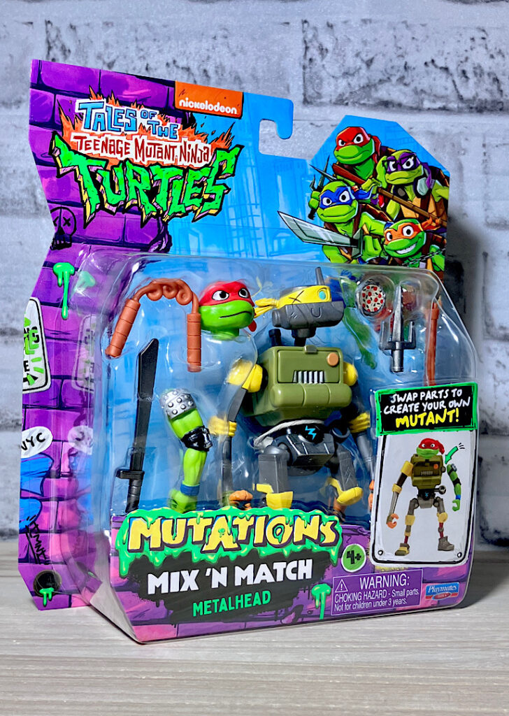【パッケージ】「テイルズオブザ・ティーンエイジミュータントニンジャタートルズ」は2023年の映画「ミュータントパニック(原題:MUTANT MAYHEM)」の続編2Dアニメ。パラマウント+での配信で、最近Netflixにも追加されました。そのフィギュアシリーズが「MUTATIONS/MIX’N MATCH」というわけです。