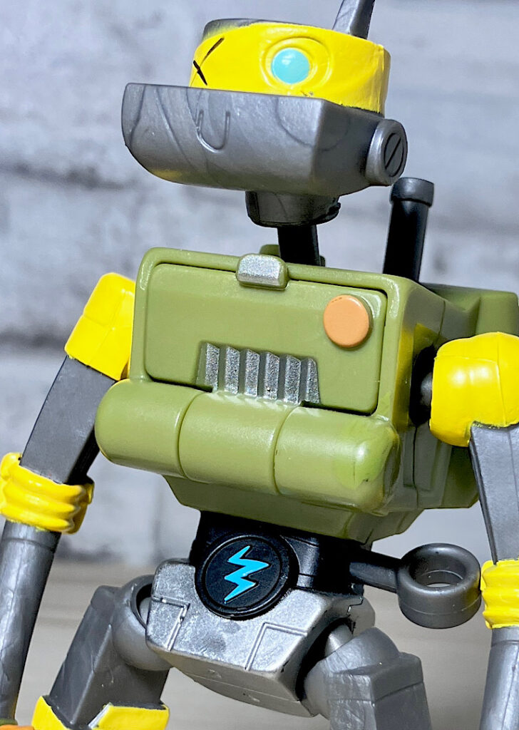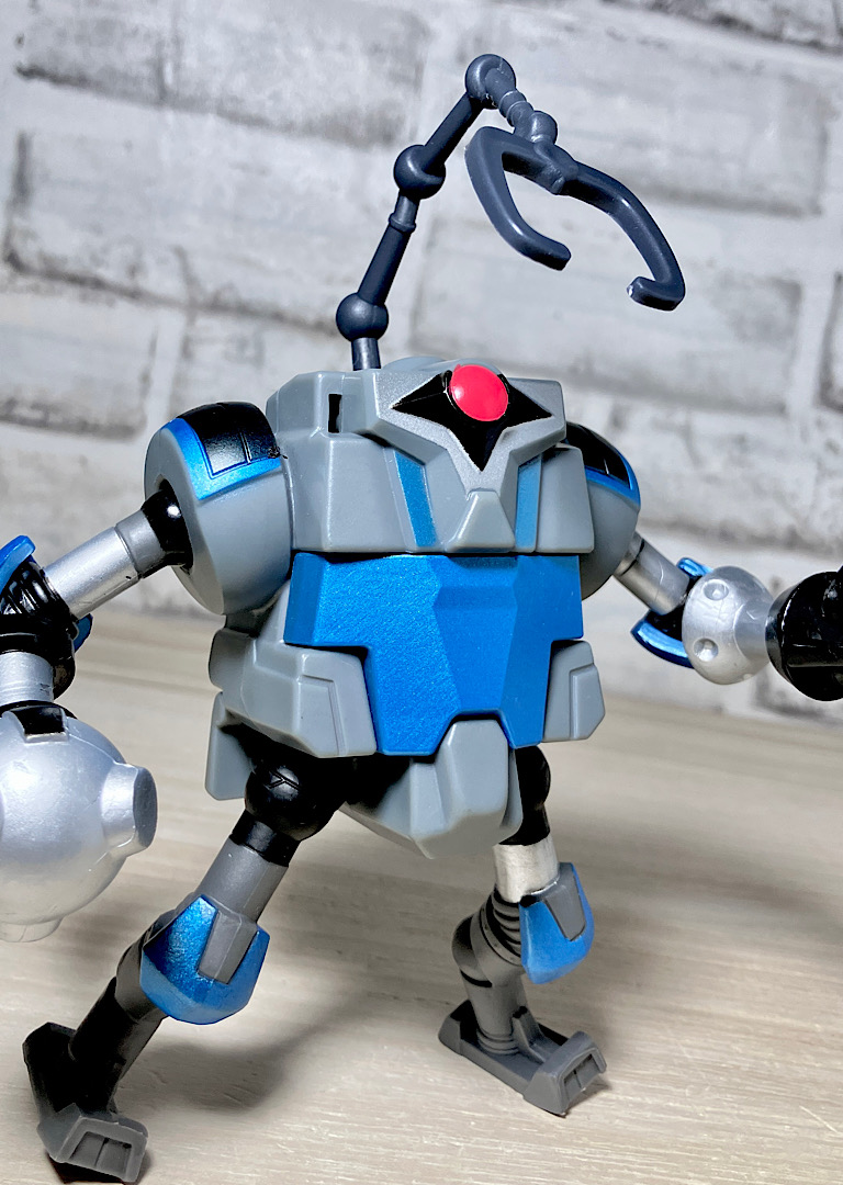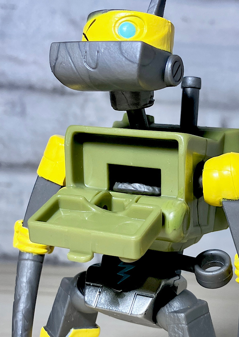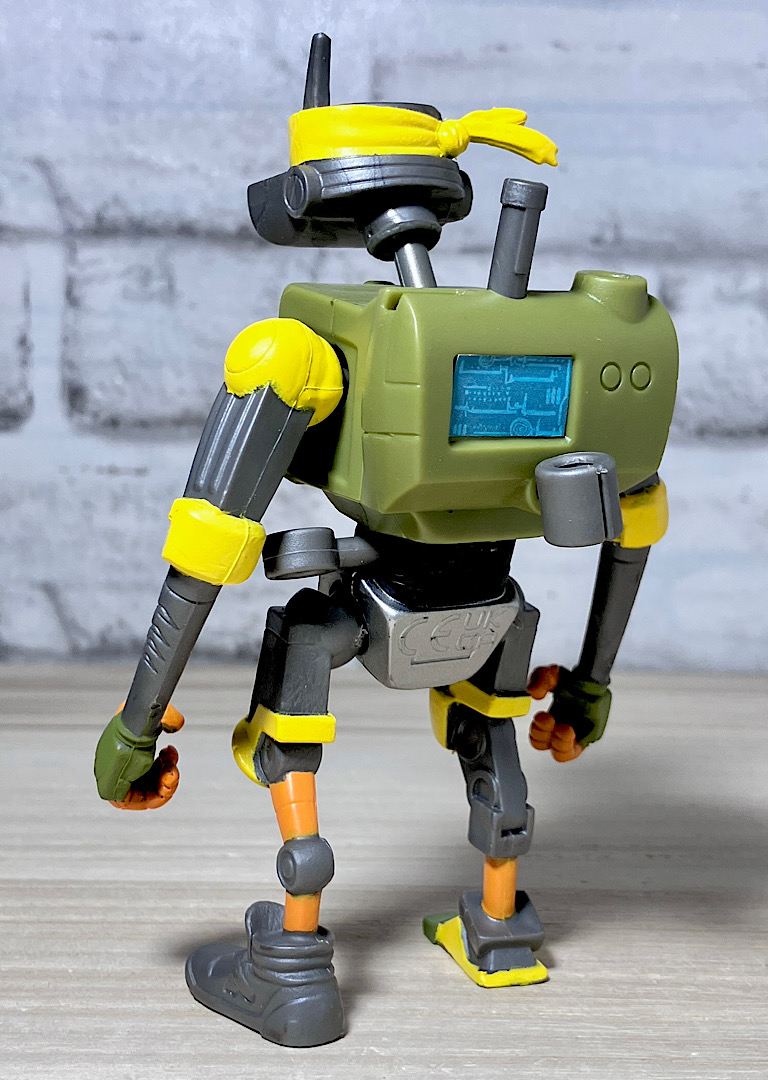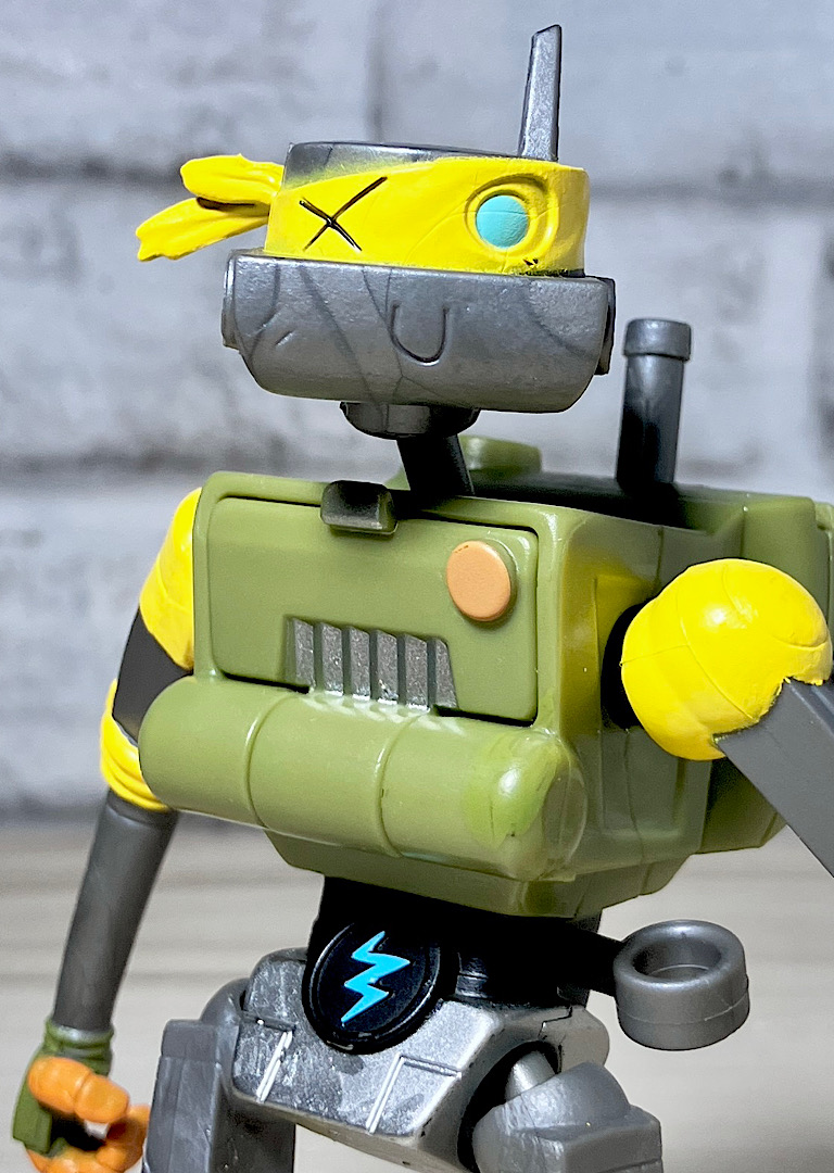 【アップ】メカゾイドを素体に家電をくっつけて頭部をカメっぽくしたようなメタルヘッド。タートルズにはいない黄色がメインカラーです。