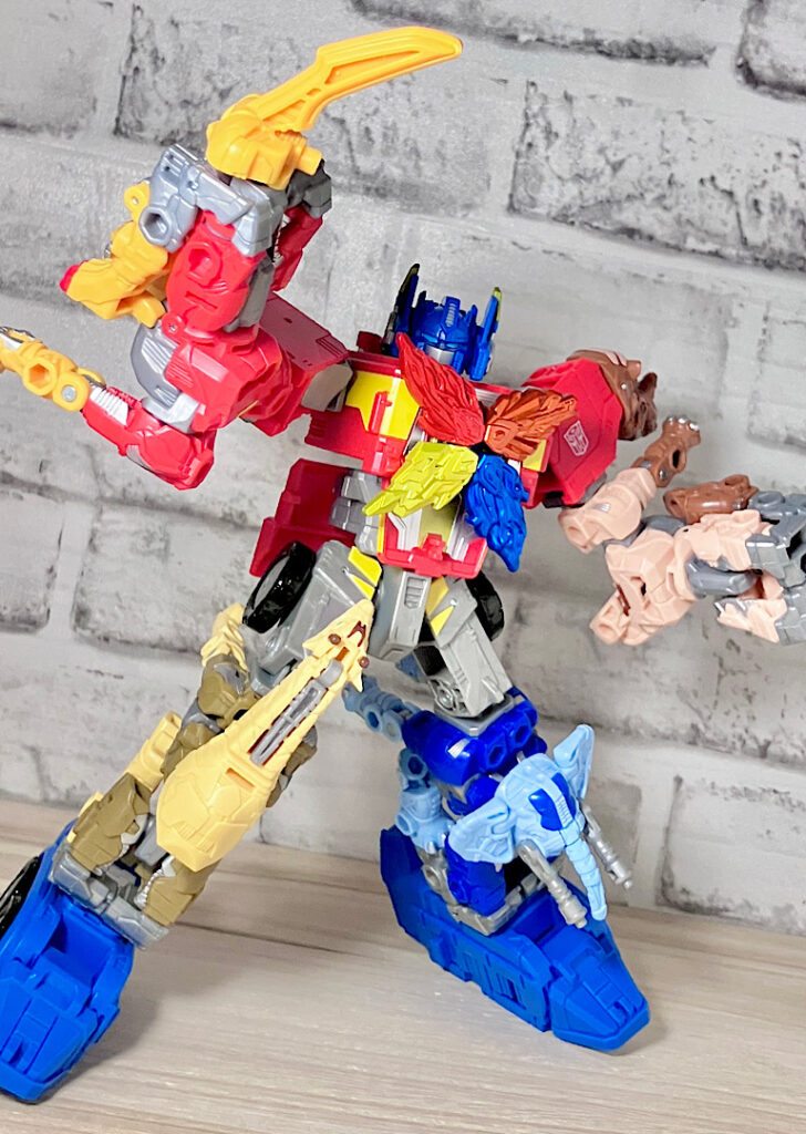 ワイルドキングはブロック玩具要素が強いので、サイヘッドを胸に付けてみたりしてもOK。