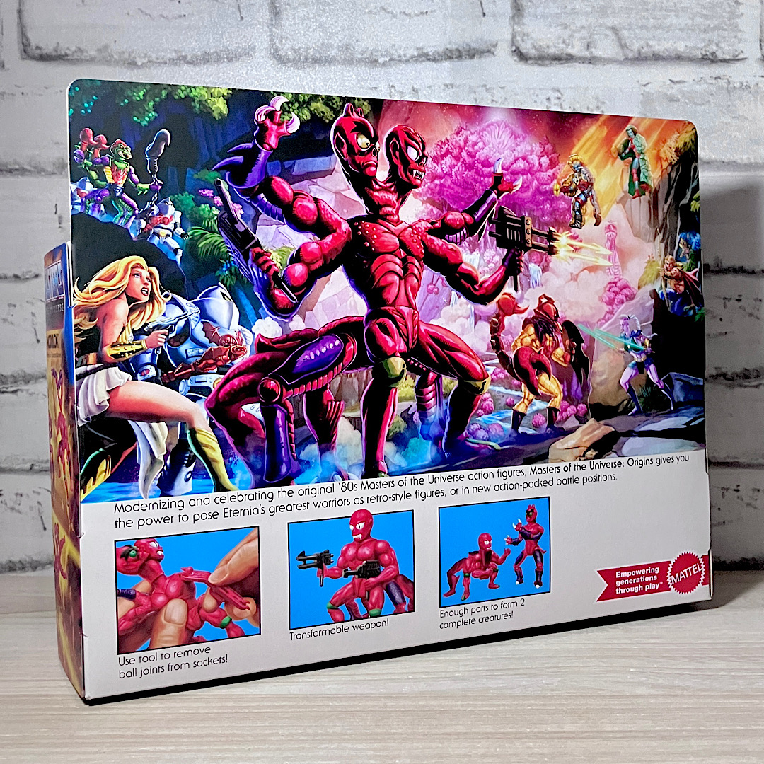 【パッケージ】元々ゲイレン・ナイクロフトという人間の科学者でしたが、邪悪な計画のために捕らえられ投獄。そこから脱出するために、発明品を使って自らの身体をモンスター化しました。ヒーマンとシーラ両方の作品に登場し、オリジンがエピソードではっきりと描かれているわりと珍しいキャラです。オリジンズでは米Amazonなど一部ストア限定アイテムとしてリリースされました。