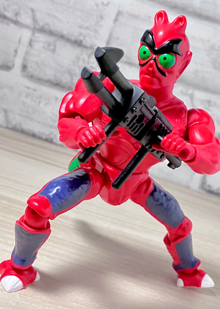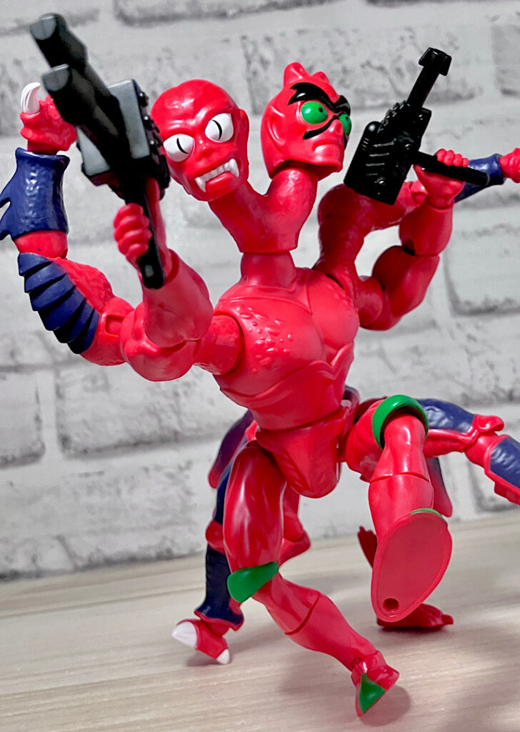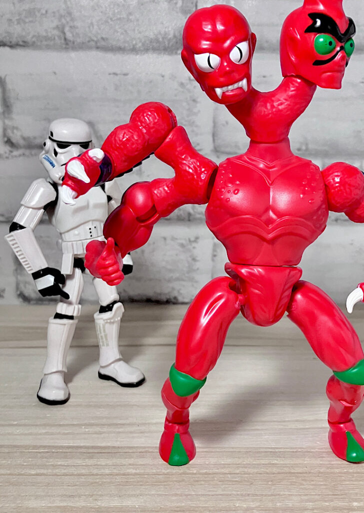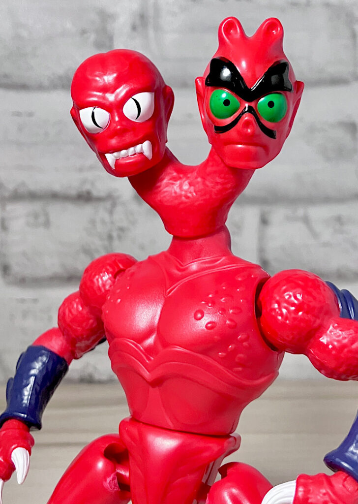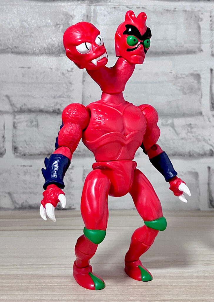 【フロント&リア】ブラスターから取り出した素体の状態。頭部が2つにわかれた異形キャラで、ボディはシンプルな宇宙人系。双頭キャラはアメリカンコンテンツでは時折見られます。