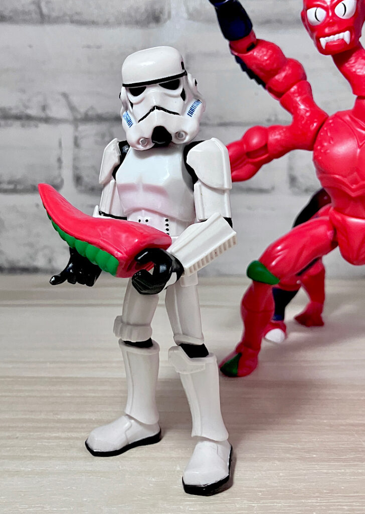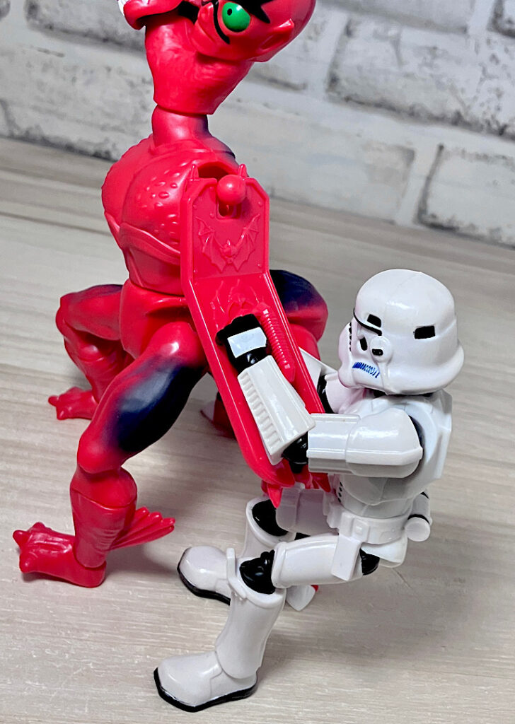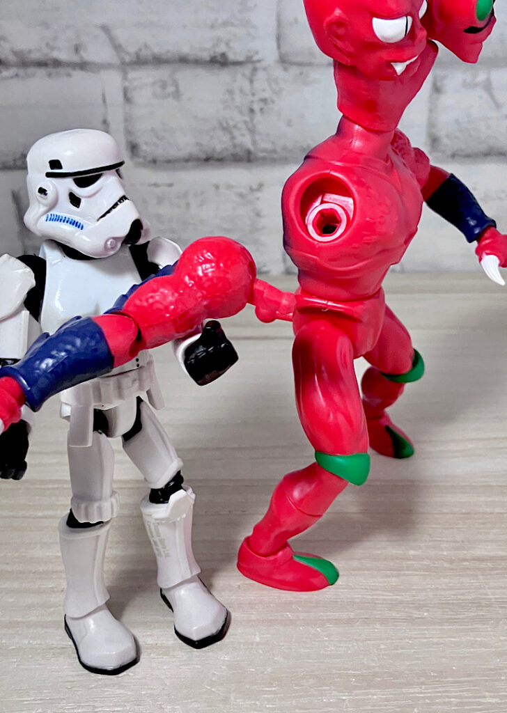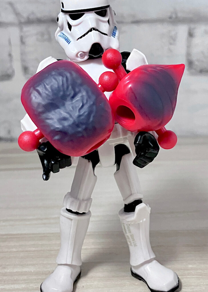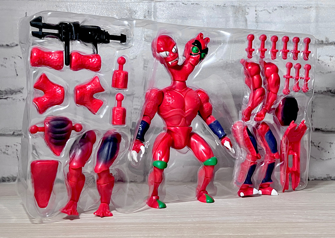 【フロント&リア】ブラスターから取り出した素体の状態。頭部が2つにわかれた異形キャラで、ボディはシンプルな宇宙人系。双頭キャラはアメリカンコンテンツでは時折見られます。