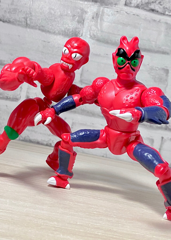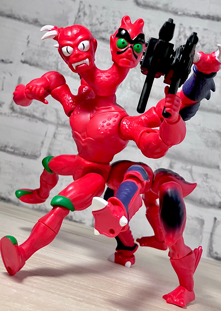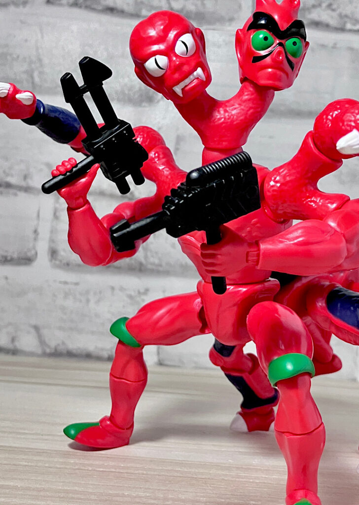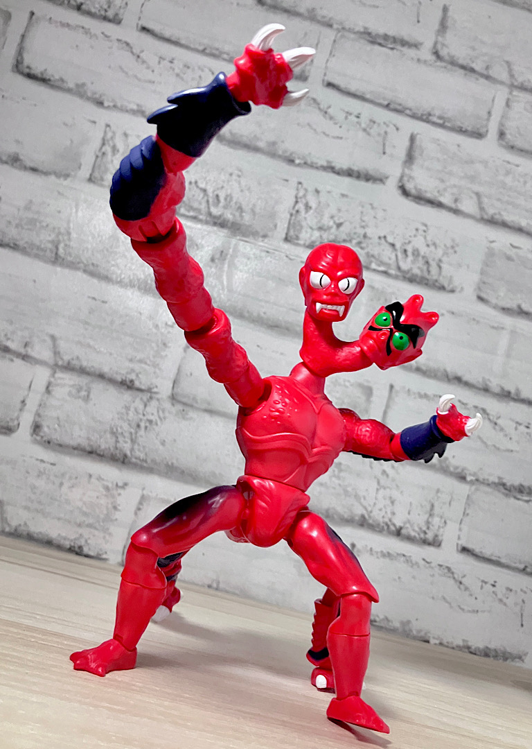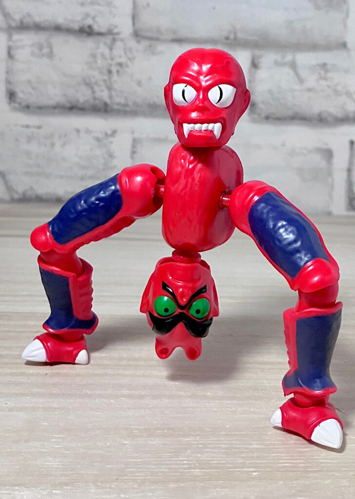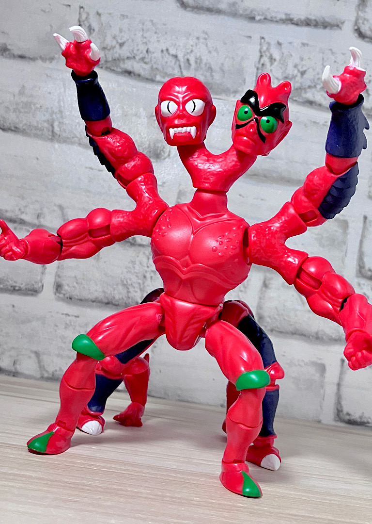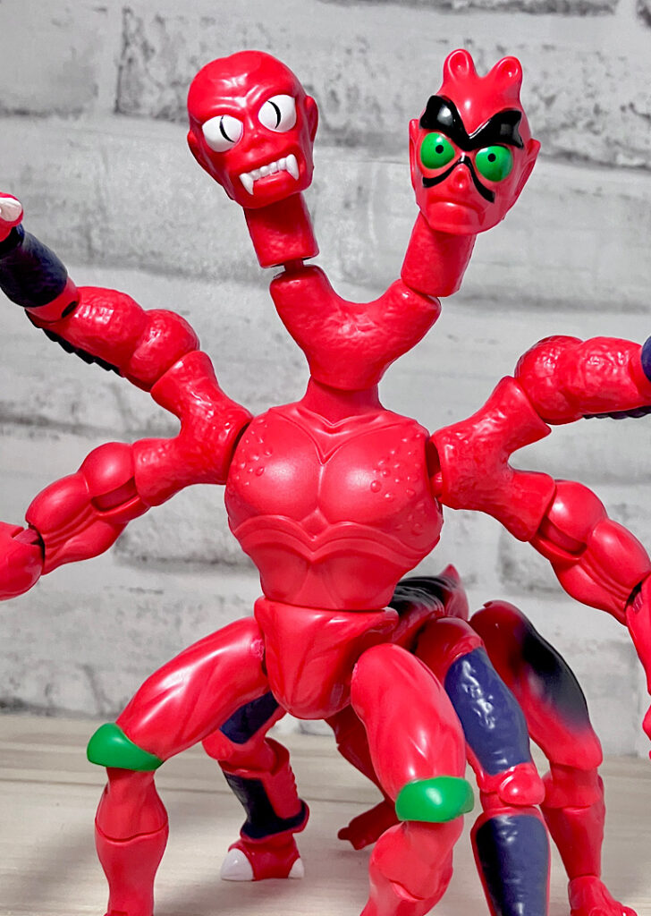 【アップ】向かって左のハ◯頭がアニメでも使われている本来の頭部。右側はなんかやっつけ感のあるクリーチャーですが、どちらも何やら昭和の劇画で描かれた妖怪みたいな不気味な雰囲気があります。