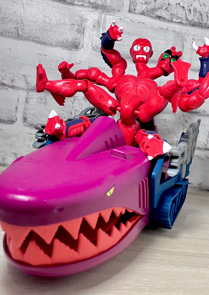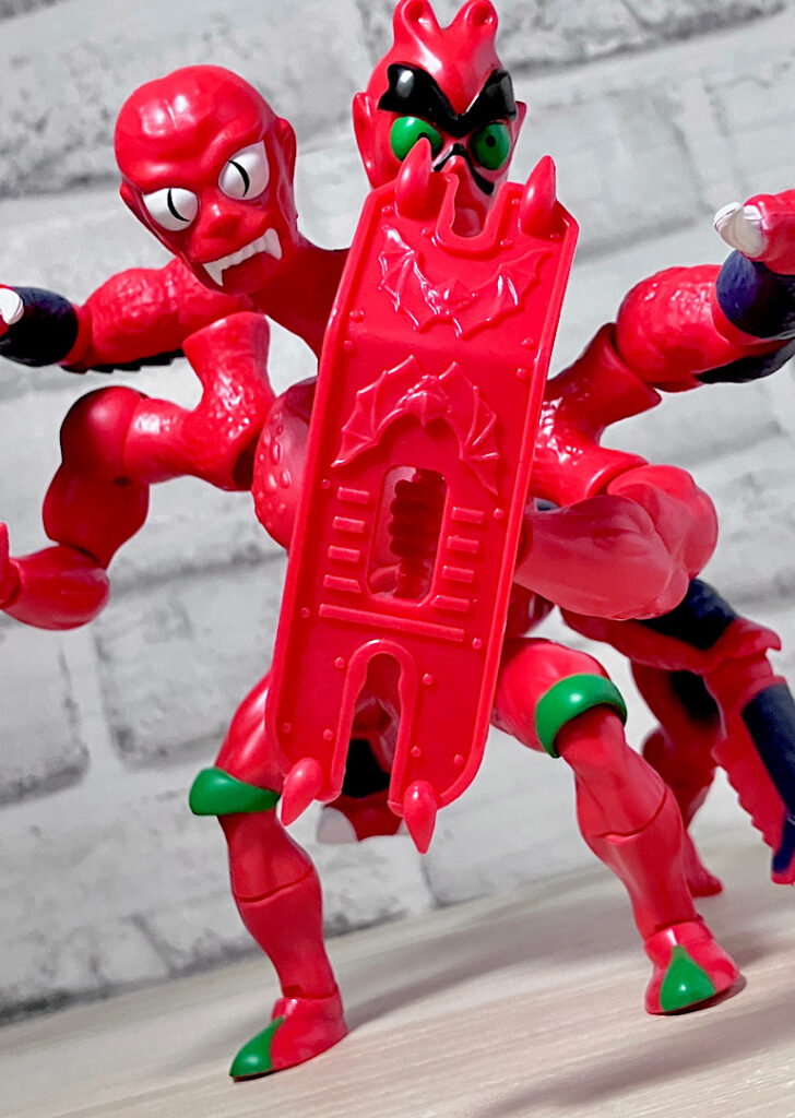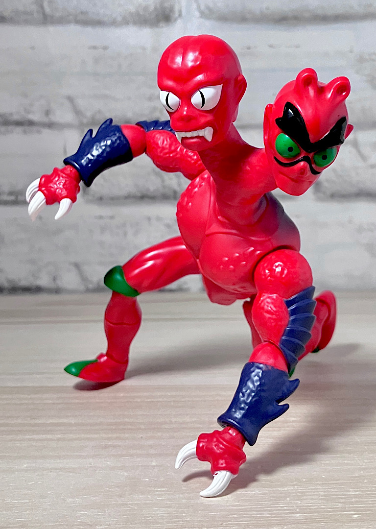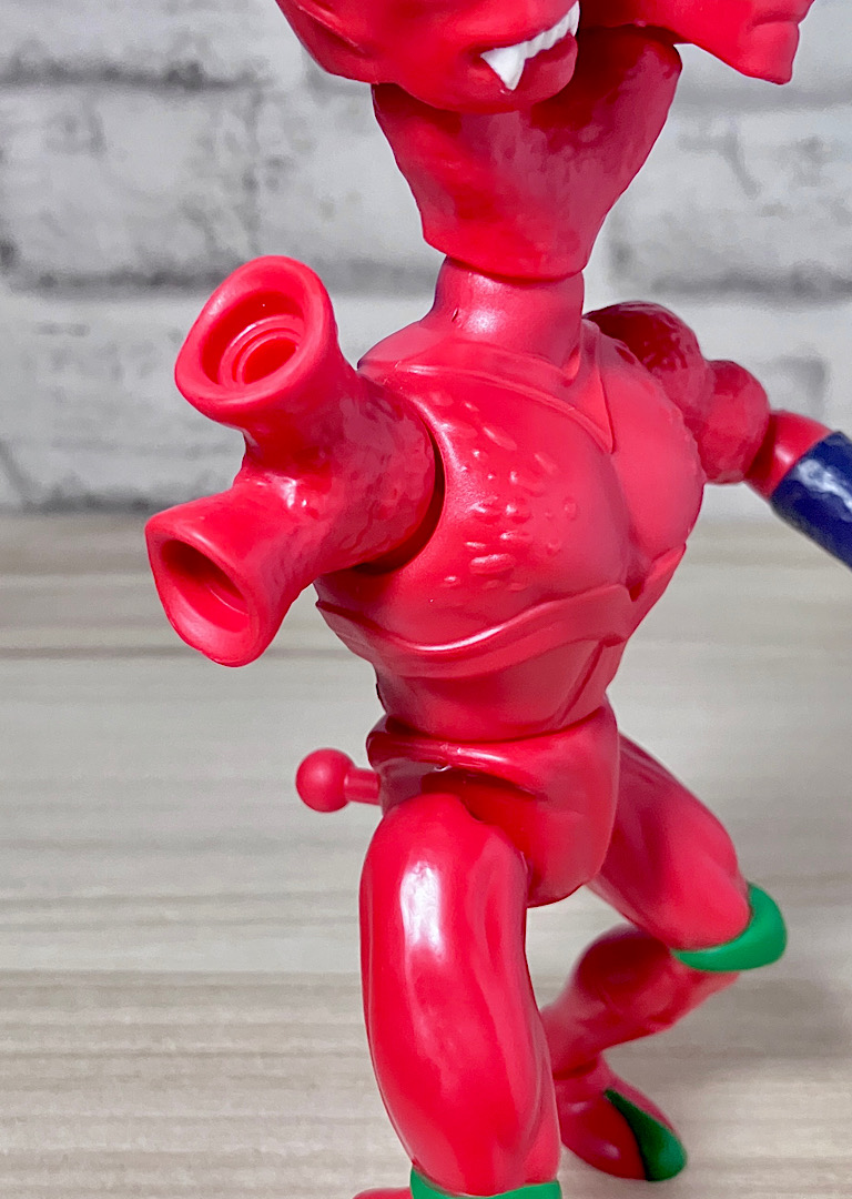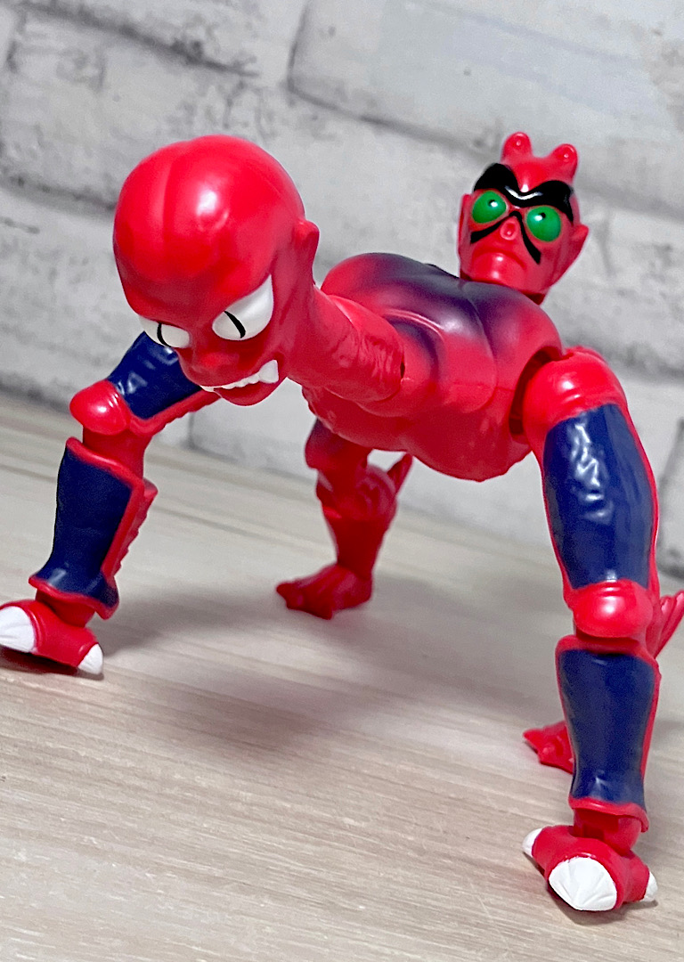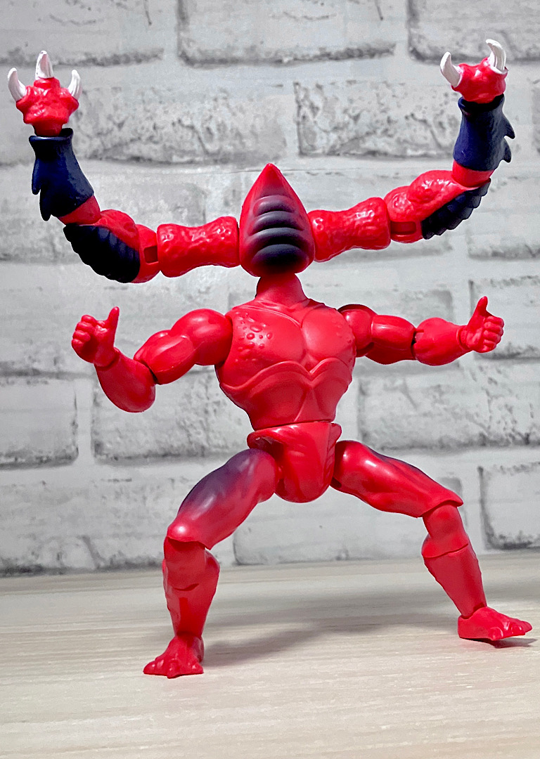 【アップ】向かって左のハ◯頭がアニメでも使われている本来の頭部。右側はなんかやっつけ感のあるクリーチャーですが、どちらも何やら昭和の劇画で描かれた妖怪みたいな不気味な雰囲気があります。