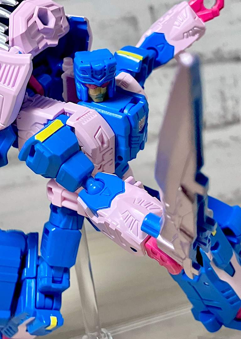 頭部はちょっと勇者っぽいデザインで造形も良く、薄いピンクの絶妙なカラーリングもよく再現されております。