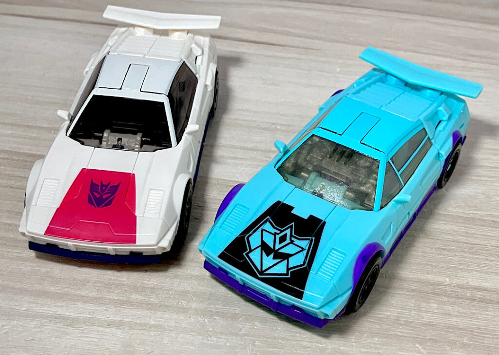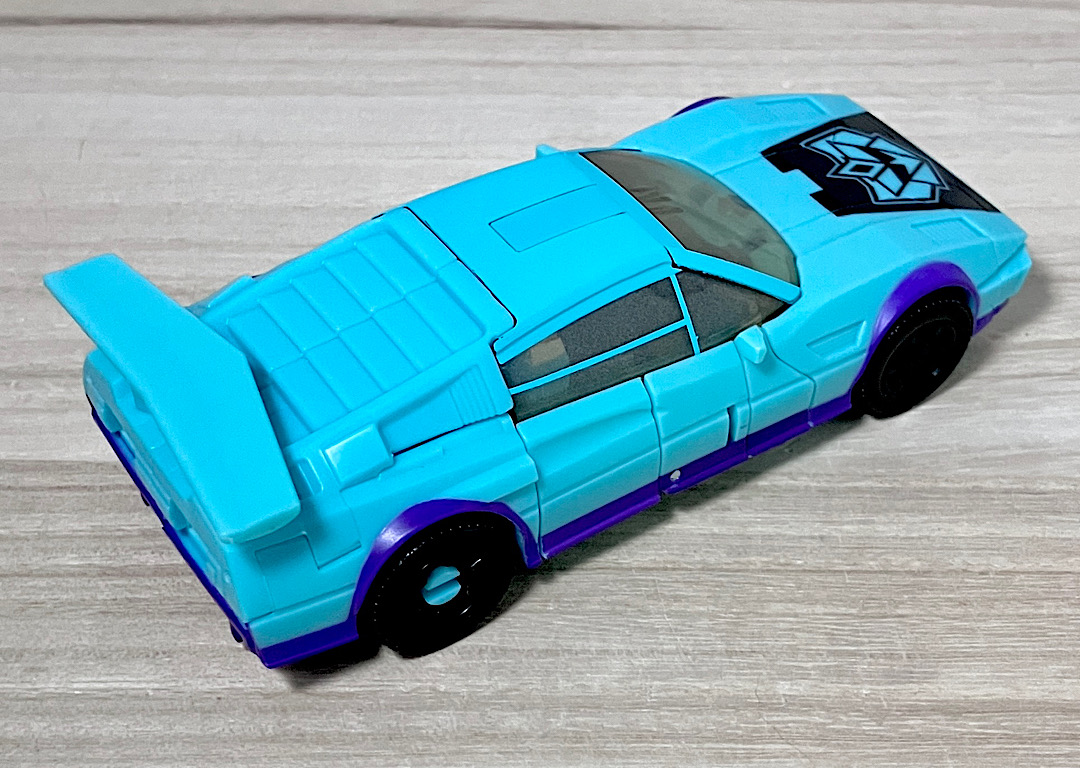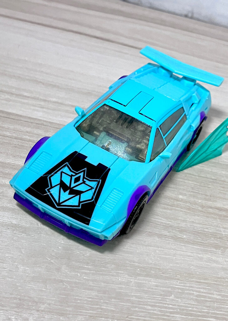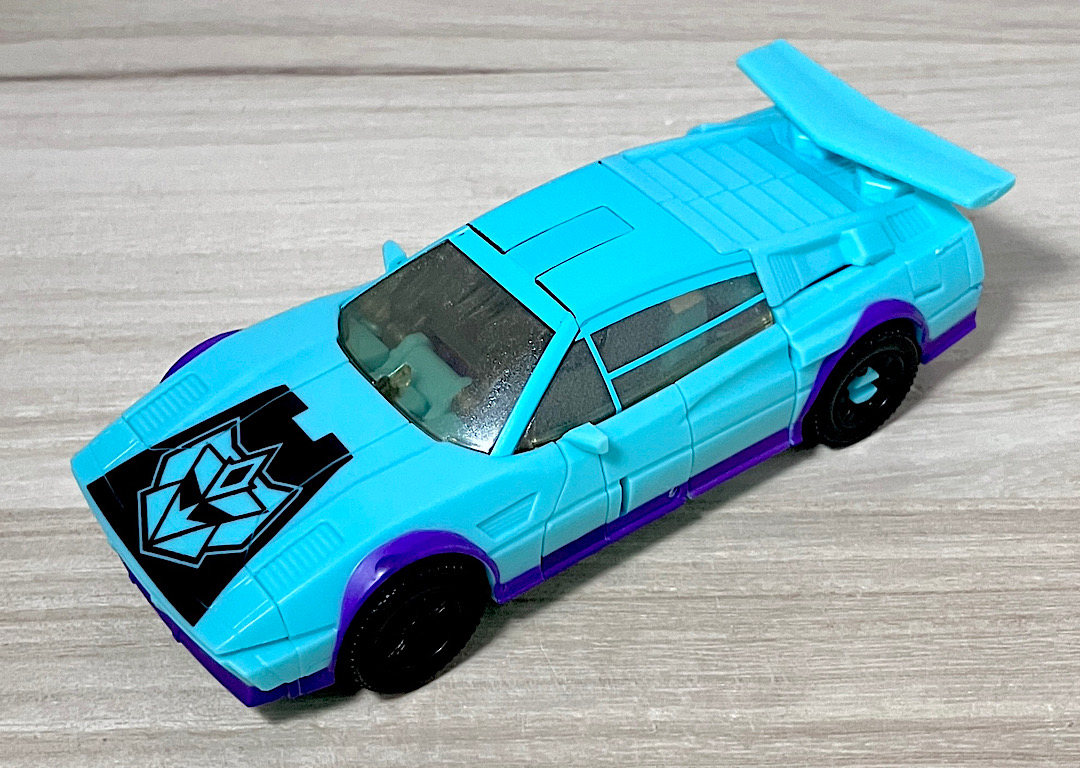 【ビークルモード】スポーツカーに変形。もともとランボルギーニカウンタックに変形するキャラですが、ワイルドライダーのリデコのため、「カウンタックっぽいフェラーリのようなもの」になっちゃってます。