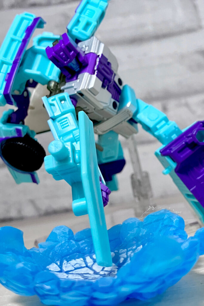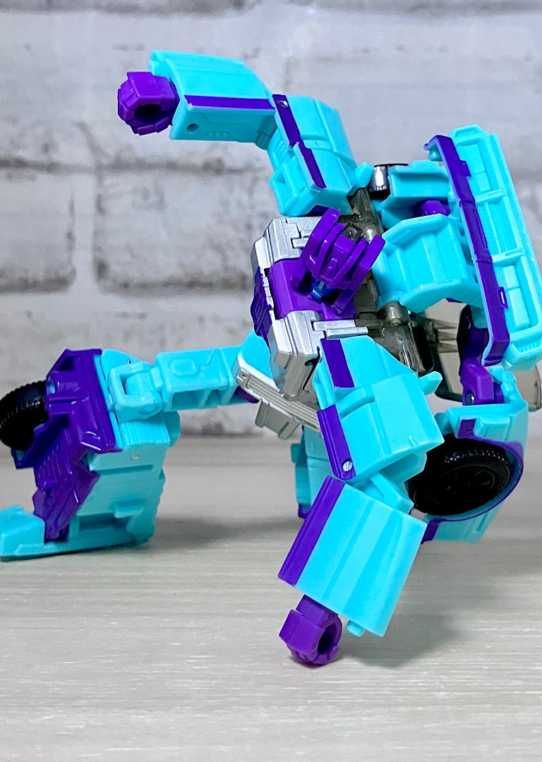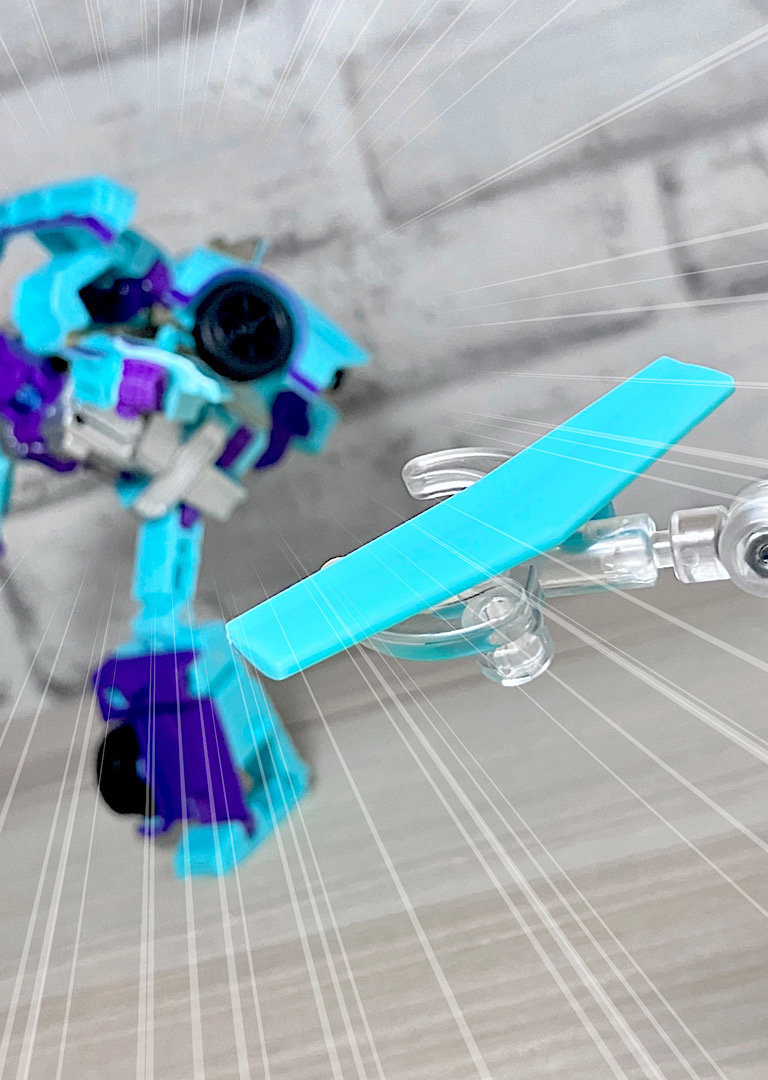 【ロボットモード】実は型としてはいまいちなブレークダウン。変形の都合で胴体が小さめだったり、背中の謎のウィング分割があったりが気になります。それでもG2ならではの鮮烈な水色がやっぱり良い!