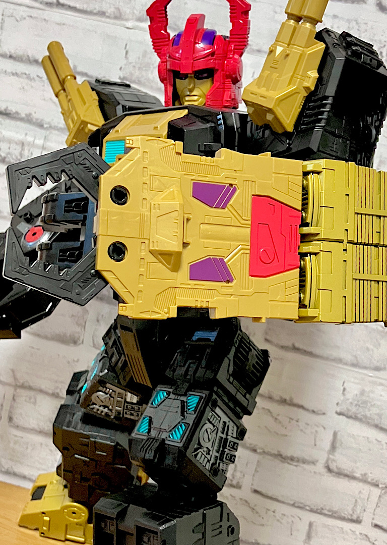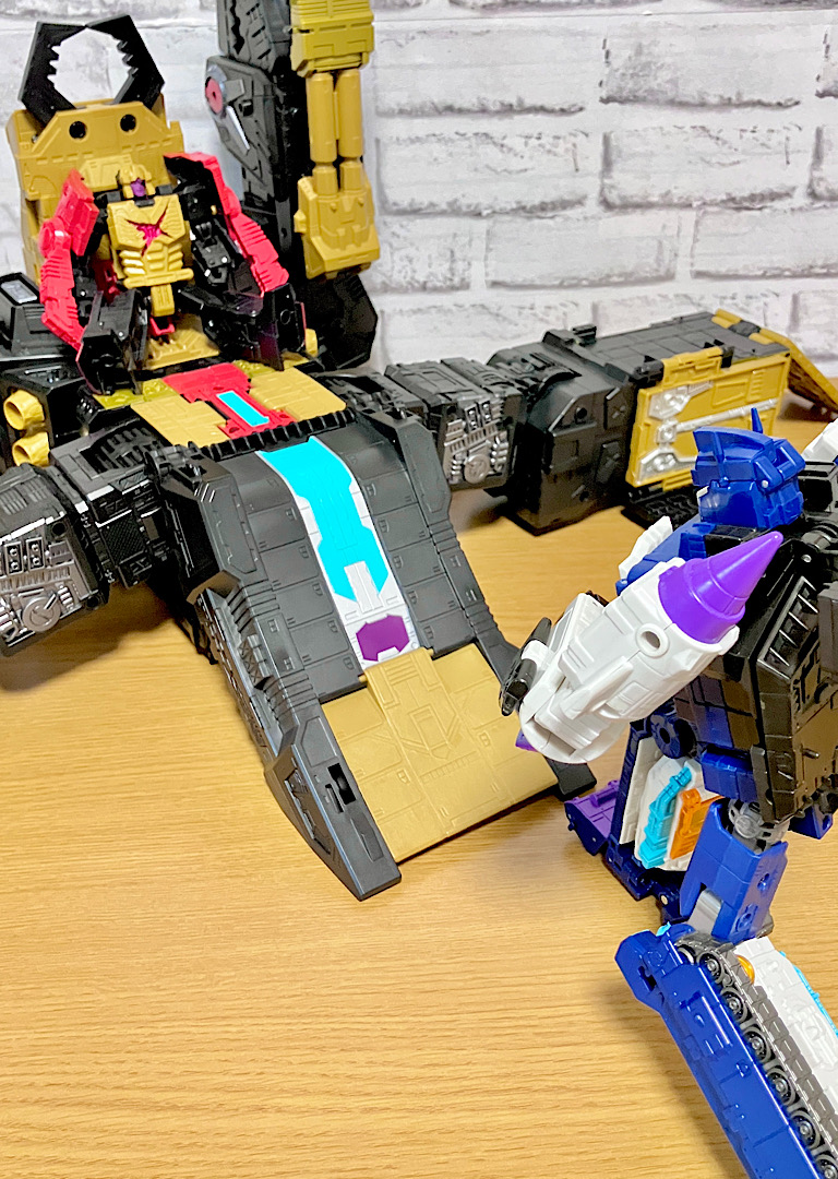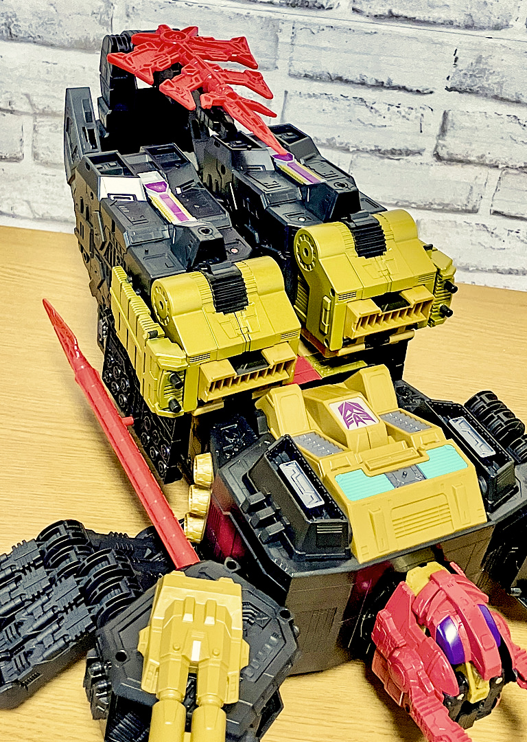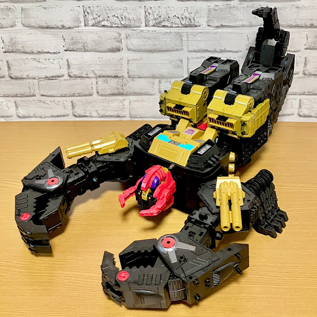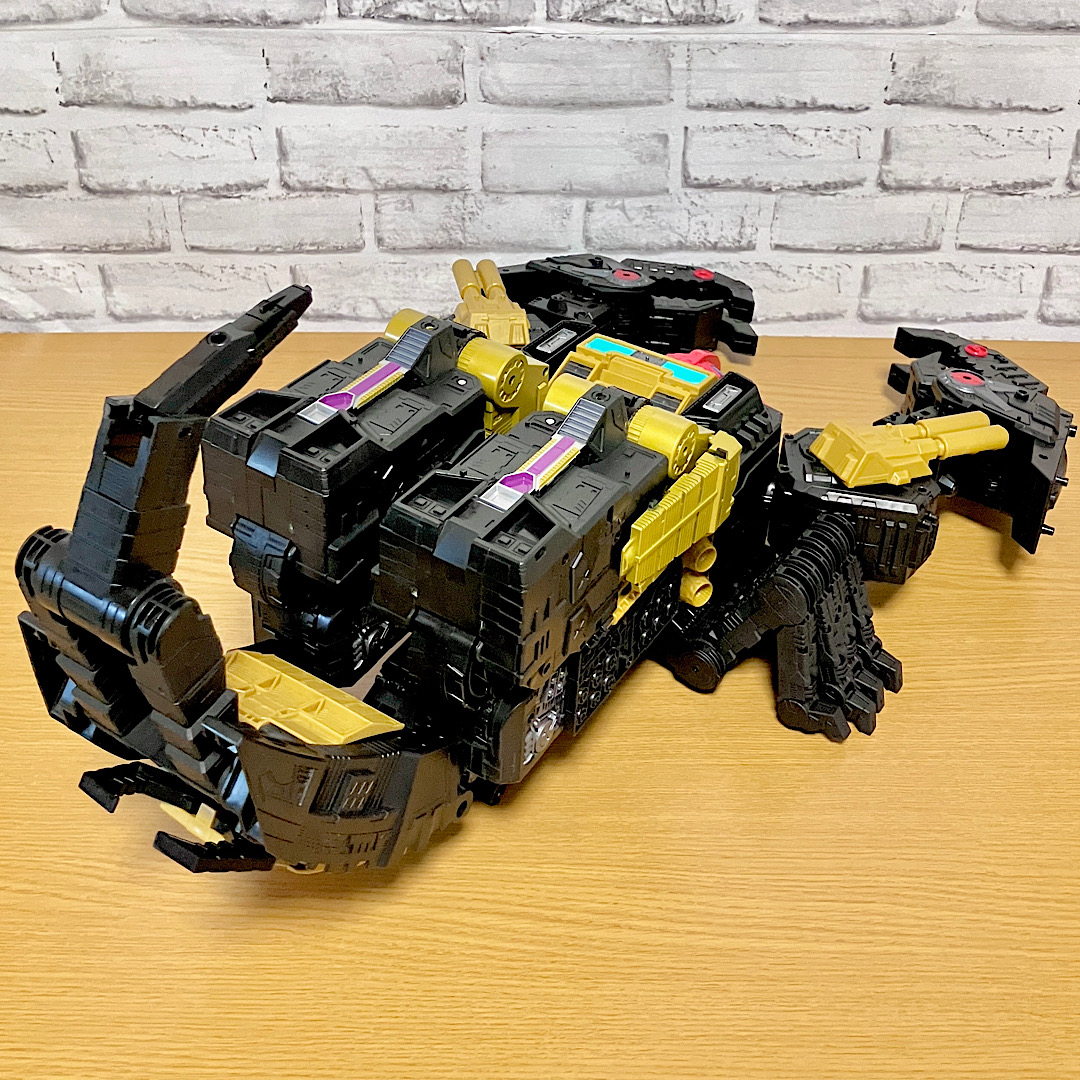 当時品がメガザラック(スコルポノック)のリデコだったのを踏襲し、アースライズ・タイタンクラススコルポノックのリデコとしてリリース。バカデカいタイタンながらジェネレーションセレクト枠で限定品として発売されました。いつものジェネセレのパッケージがそのままタイタンの大きさに拡大されており、もう変な笑いしか出てきませんw
