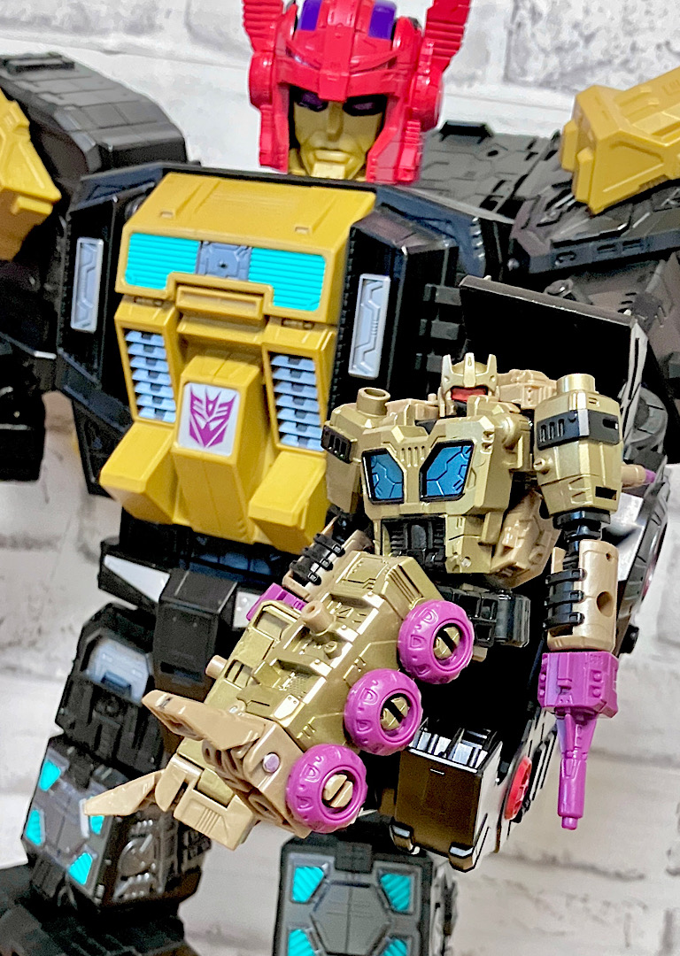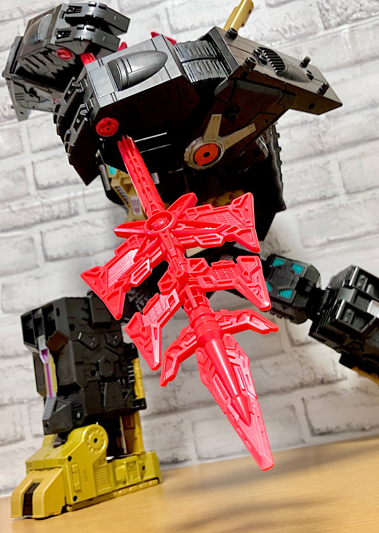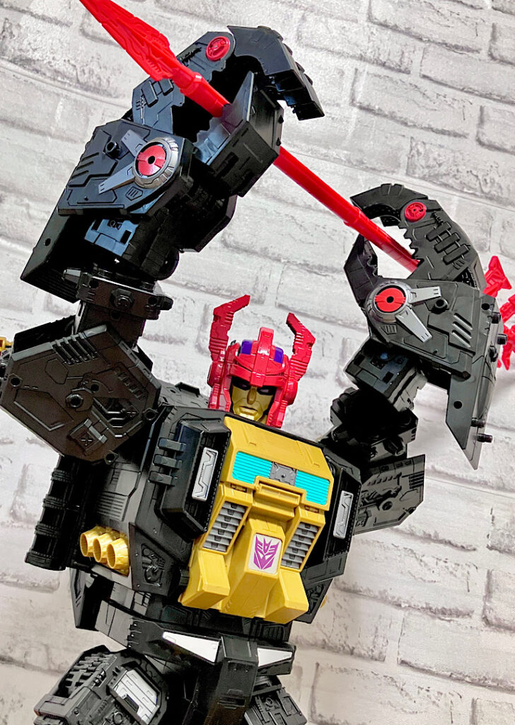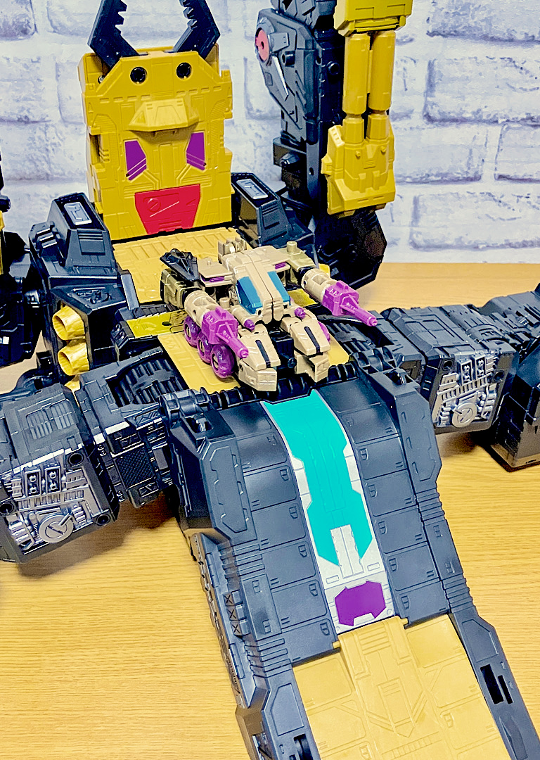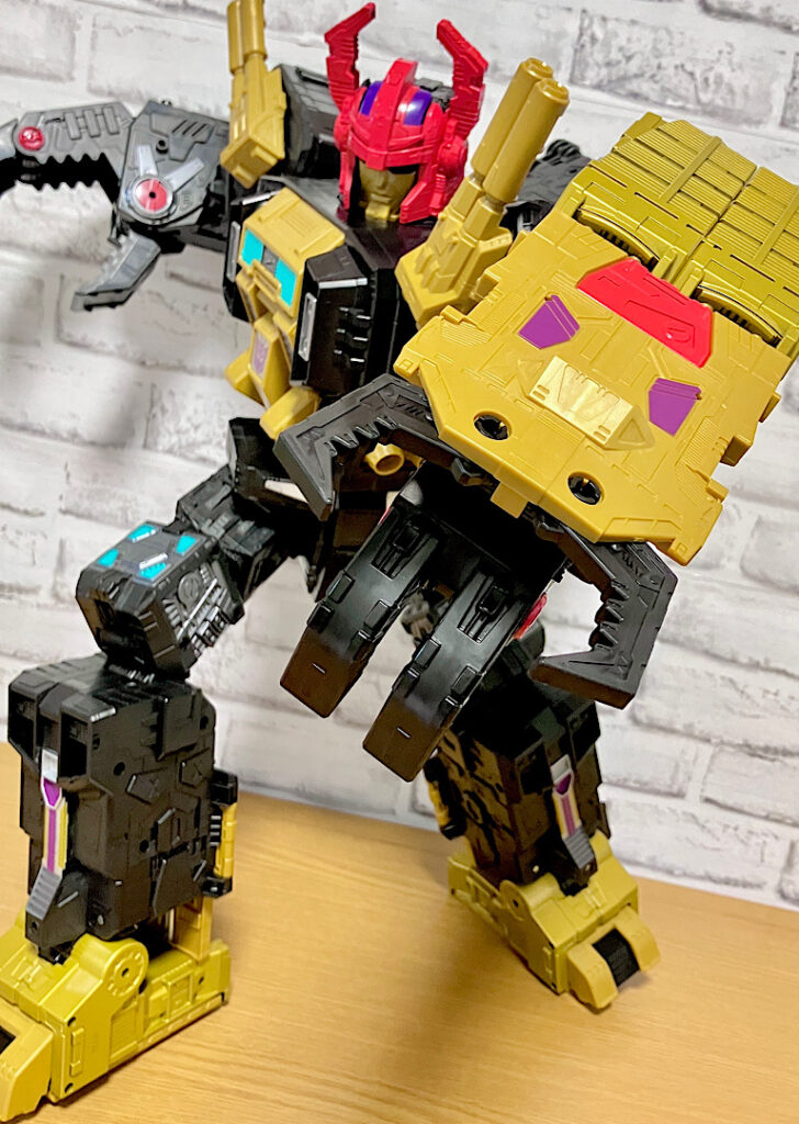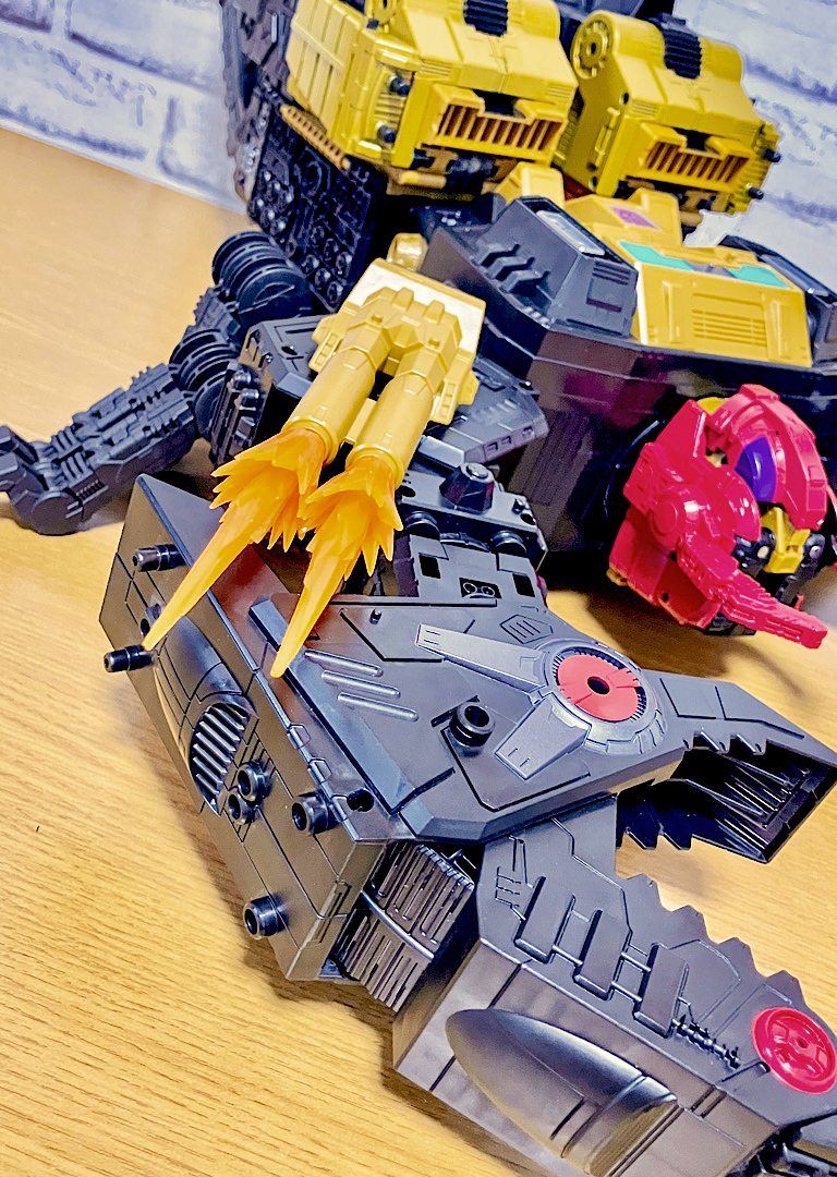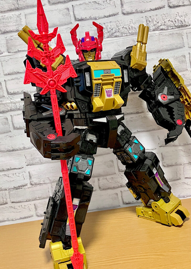 当時品がメガザラック(スコルポノック)のリデコだったのを踏襲し、アースライズ・タイタンクラススコルポノックのリデコとしてリリース。バカデカいタイタンながらジェネレーションセレクト枠で限定品として発売されました。いつものジェネセレのパッケージがそのままタイタンの大きさに拡大されており、もう変な笑いしか出てきませんw