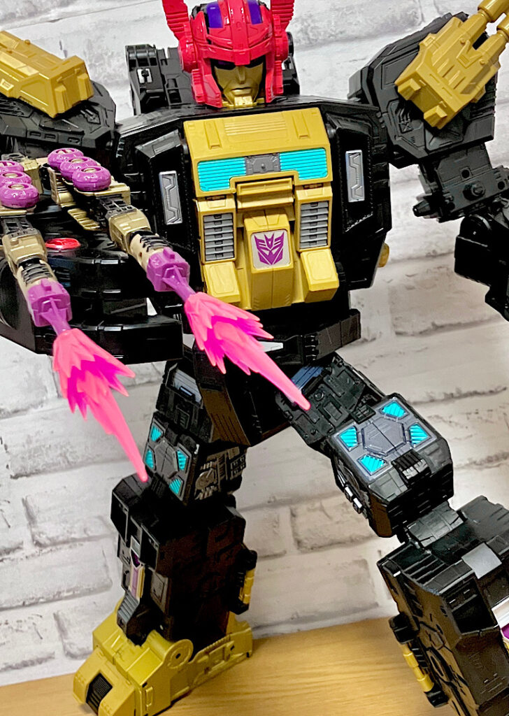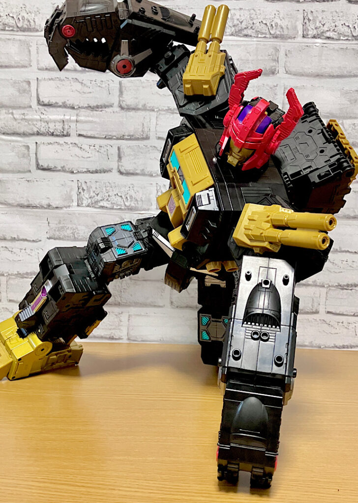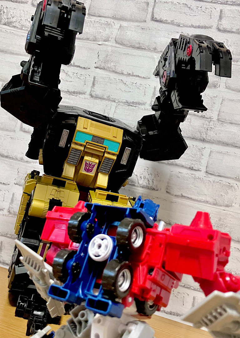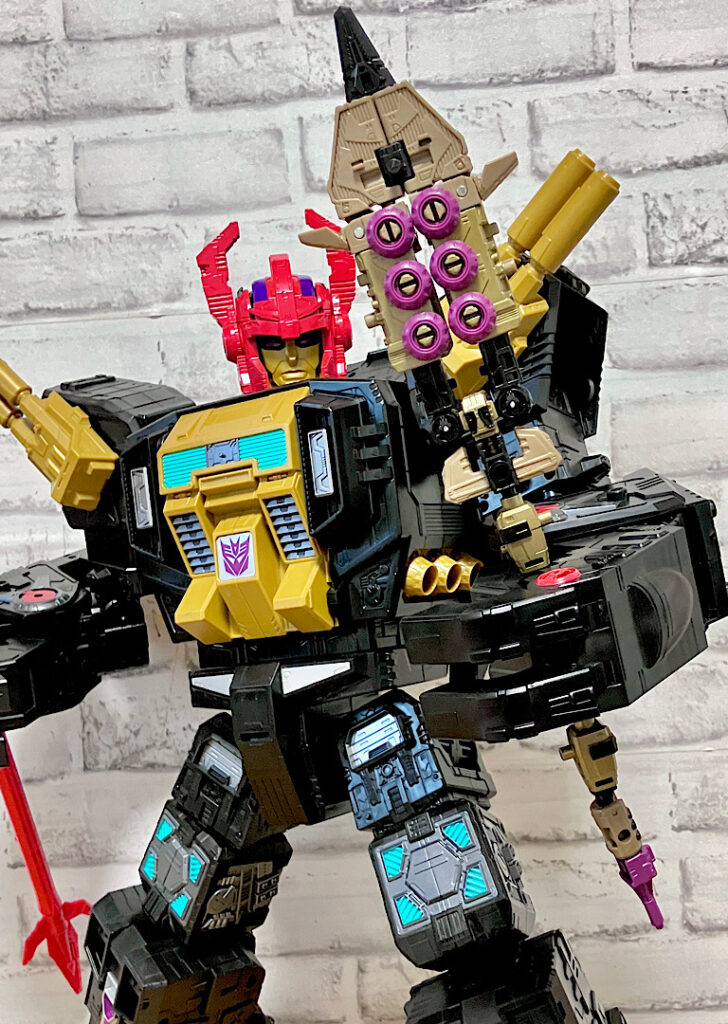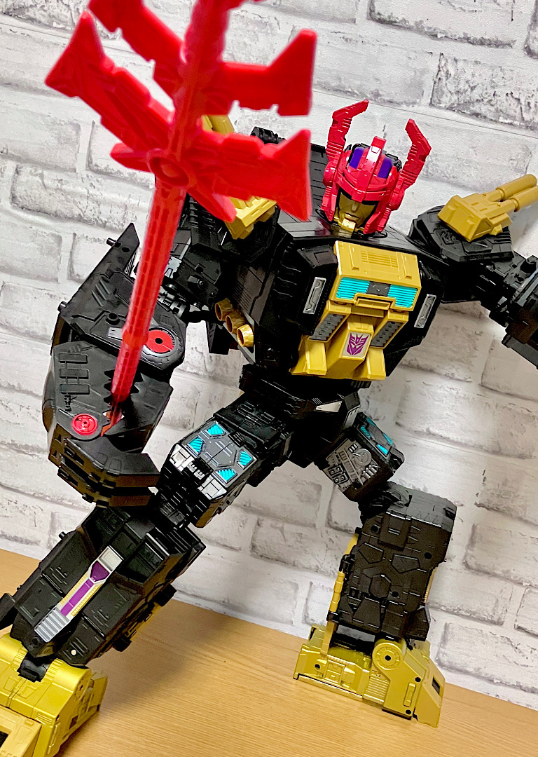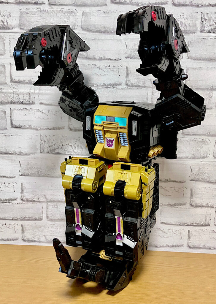 当時品がメガザラック(スコルポノック)のリデコだったのを踏襲し、アースライズ・タイタンクラススコルポノックのリデコとしてリリース。バカデカいタイタンながらジェネレーションセレクト枠で限定品として発売されました。いつものジェネセレのパッケージがそのままタイタンの大きさに拡大されており、もう変な笑いしか出てきませんw