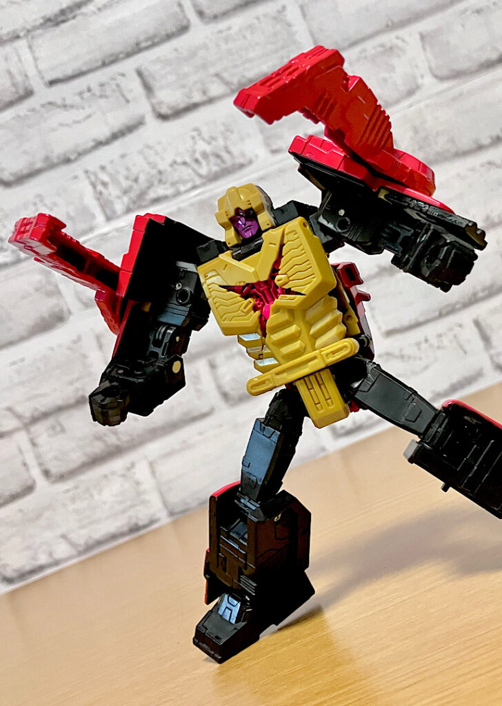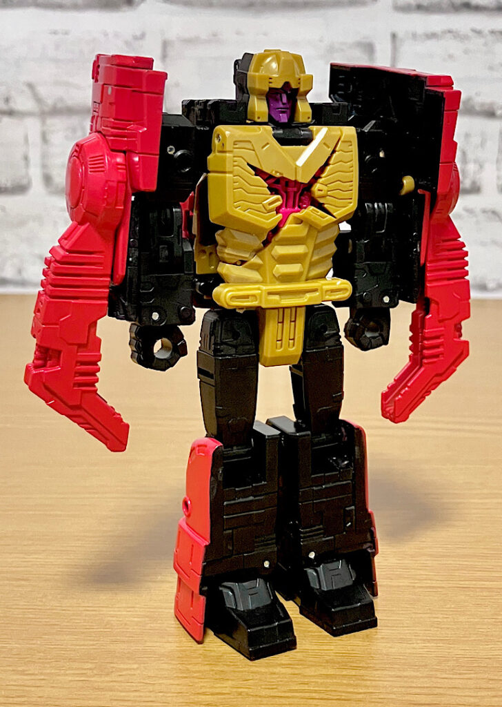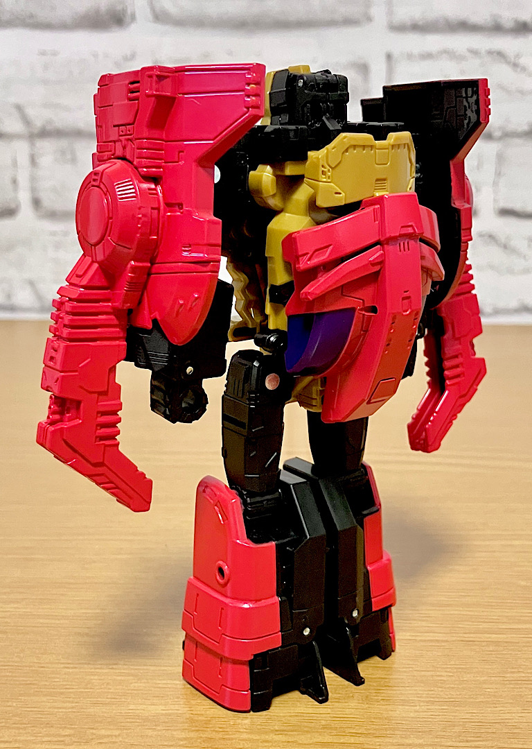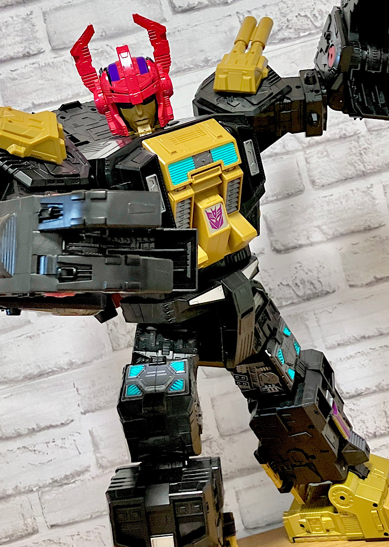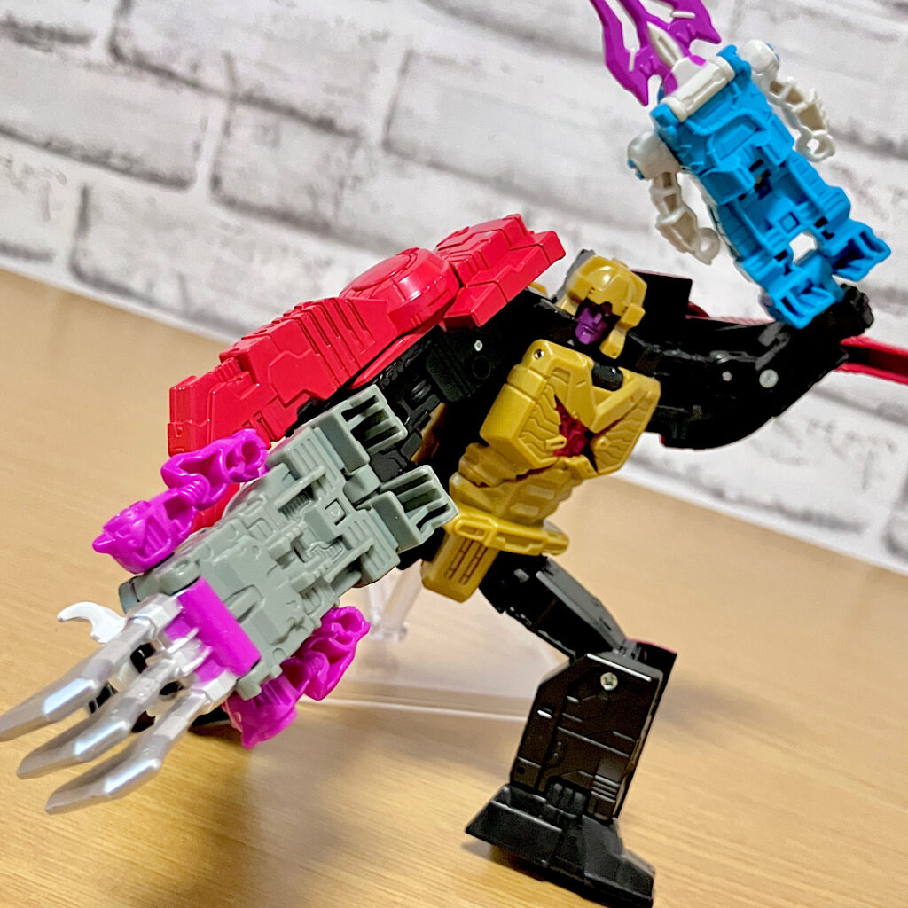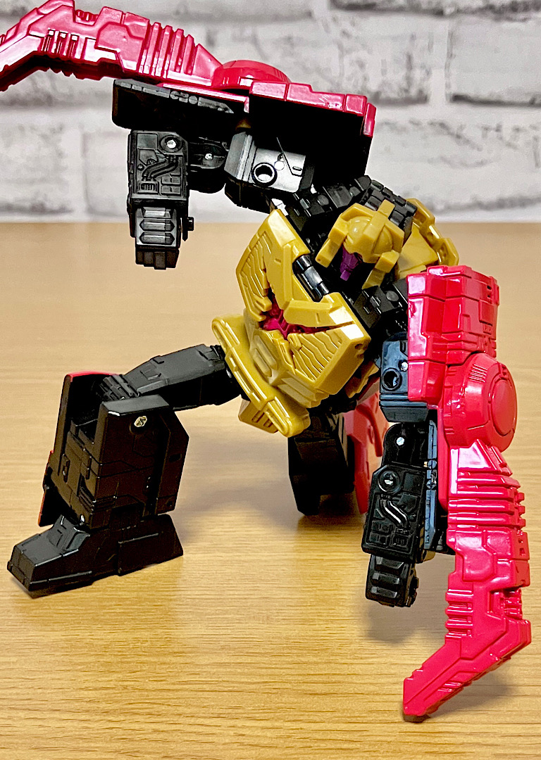 当時品がメガザラック(スコルポノック)のリデコだったのを踏襲し、アースライズ・タイタンクラススコルポノックのリデコとしてリリース。バカデカいタイタンながらジェネレーションセレクト枠で限定品として発売されました。いつものジェネセレのパッケージがそのままタイタンの大きさに拡大されており、もう変な笑いしか出てきませんw