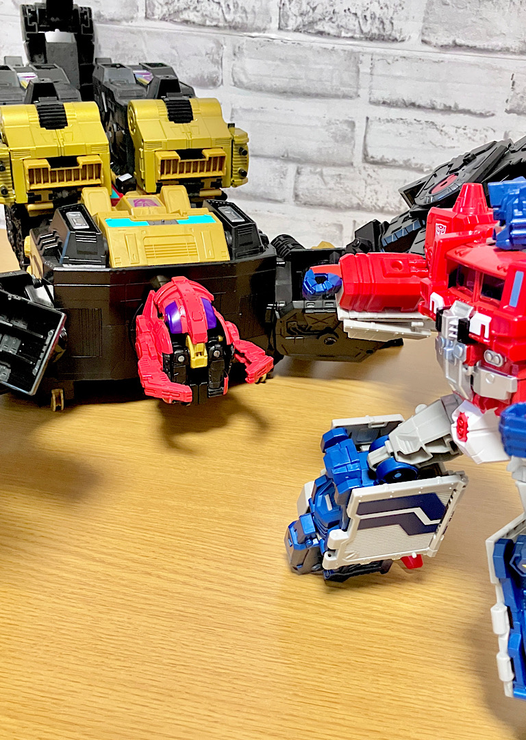 【可動】タイタンのデカさでも普通に可動するというTFのとんでもなさ!動かす時はそこそこ力を使うので、ちょっとした全身運動です。そして指をはさまないように注意しましょう。