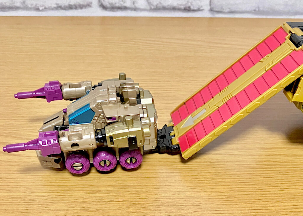 デフォルトだと背中や脚に付いていたパーツを組み合わせてできあがるのは、いわゆるザラックシールド。「ザ・ヘッドマスターズ」でメガザラックが使って印象的だったアクセサリです。