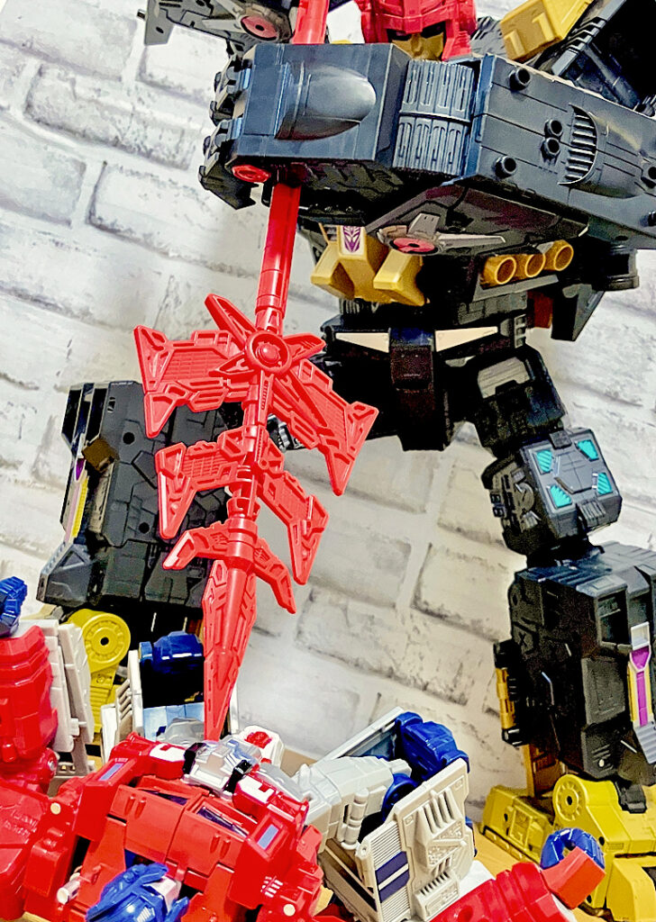 そしてブラックザラックの武器といえばタイラントスピア!今回の新規アクセサリとなり、6パーツでできています。が、ジョイントは5ミリより大きいので他のTFに持たせたりなどの拡張性は特にありません。