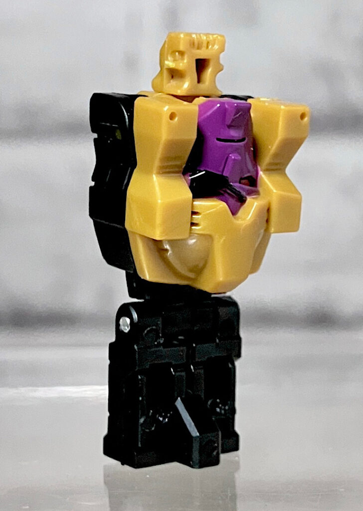 その頭部はヘッドマスター方式でボディにくっついているのですが、ちゃんと基部が回転することで左右を向けます。ちなみに中ヘッドマスターに付いている小ヘッドマスターは無くても成立します。