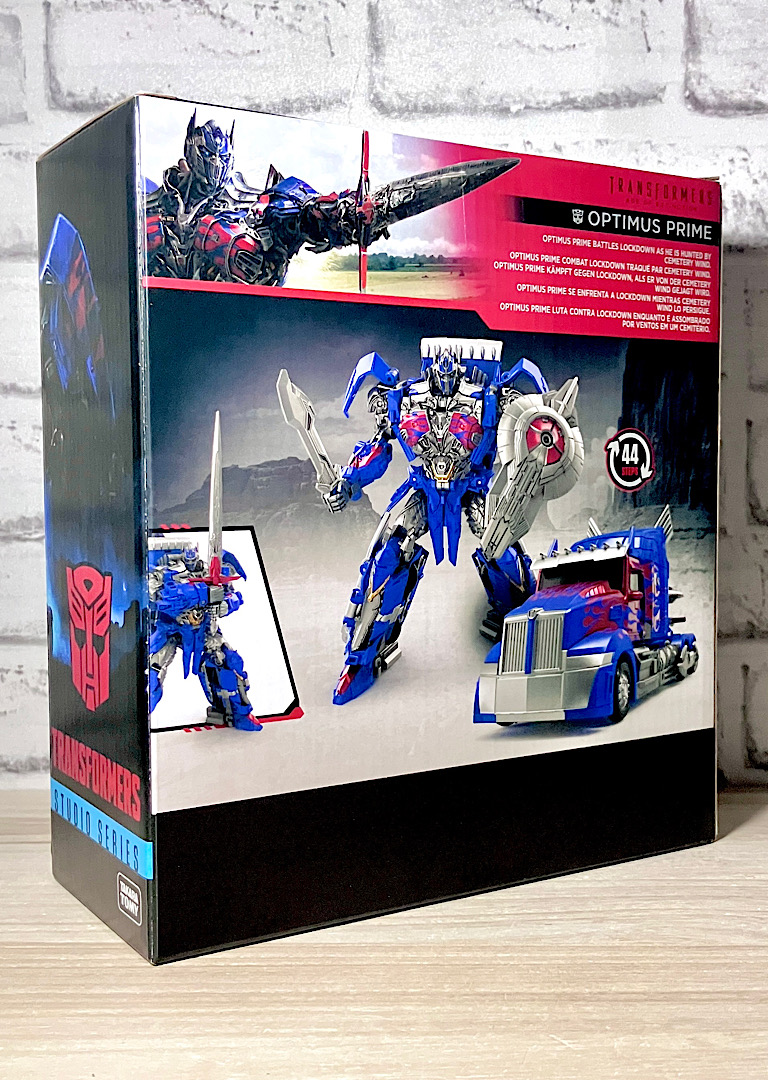 【パッケージ】長くなりすぎたスタジオシリーズが、TSとしてナンバリングリセットして再スタート。第3弾は実写映画4作目「ロストエイジ(原題:Age of Extinction)」に登場した(さらに言うと次作最後の騎士王まで続投した)騎士デザインのオプティマスプライムです。ビークルをほとんど無視した有機的なラインでデザインされているため完全再現の難しい司令官ですが、満を持してのスタジオシリーズ登場となりました。TSのリスタートにも相応しいラインナップだと思います。