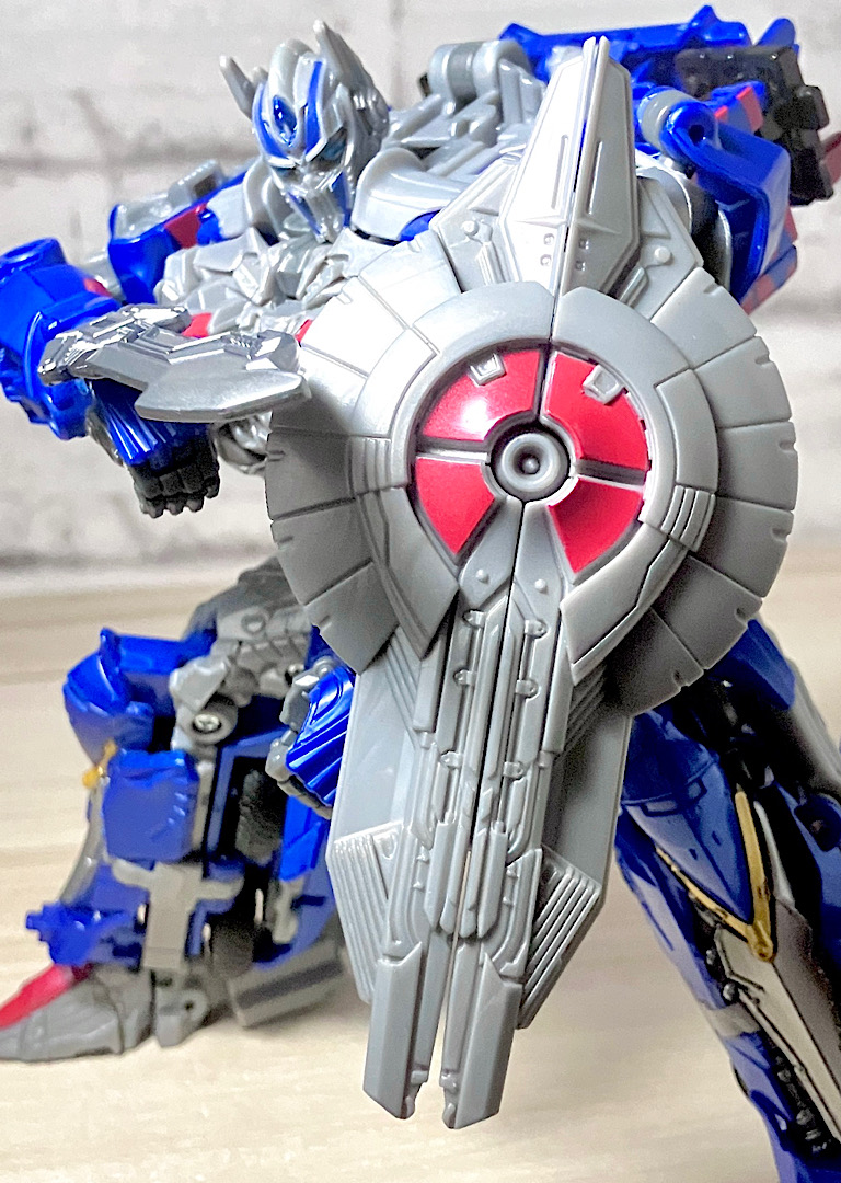 【付属品】騎士オプといえばこちら!ソードオブジャッジメント(テメノスソード)とベクターシールドです。製品としてはとても良かった騎士王版オプティマスはシールドが小さいのだけ難点だったので、今回は大満足!