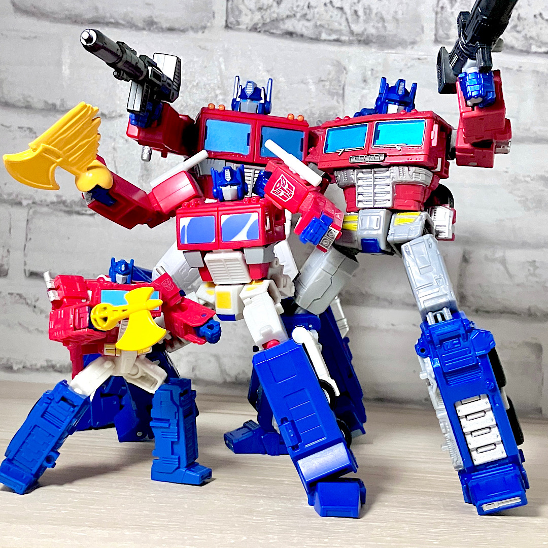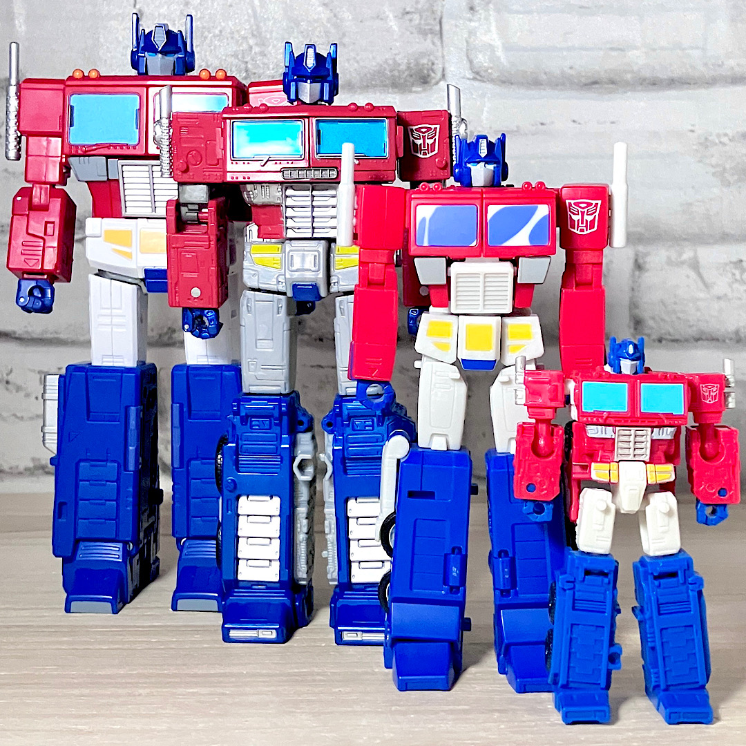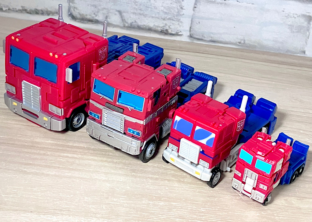 いろんなサイズのオプティマス比較。今回はデラックスサイズというコンパクトなサイズなのが最大のウリで、気軽に遊べるという点で優れております。