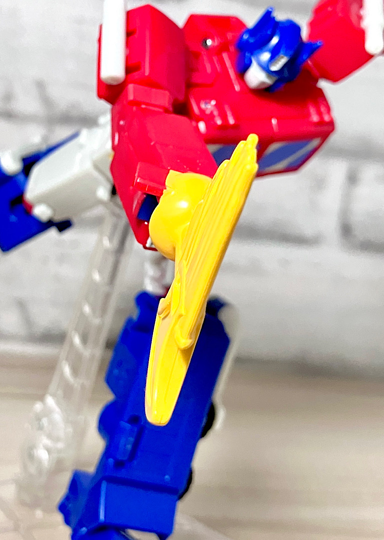 左右に持ち手のような突起があり、拳のスリットに差し込んで持たせます。マトリクスギミックももはや食傷気味なので、これよりブラスターでも付けてくれた方が嬉しかったかな。