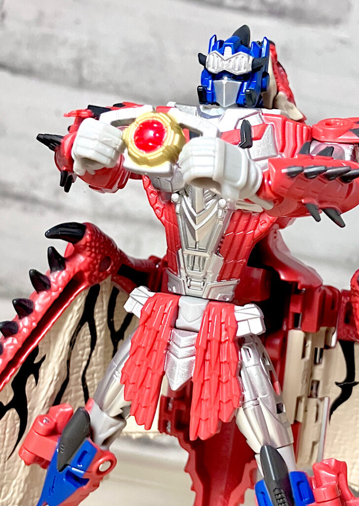 オプティマスのマトリクスがリオレウスの体内にある玉石と反応して変化したという「火竜のマトリクス」。普通のマトリクスの上半分しかないデザインで、折れやすそうでちょっと怖いです。