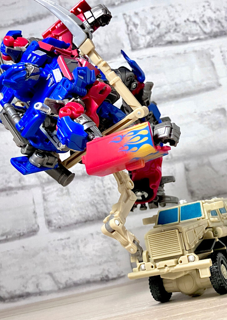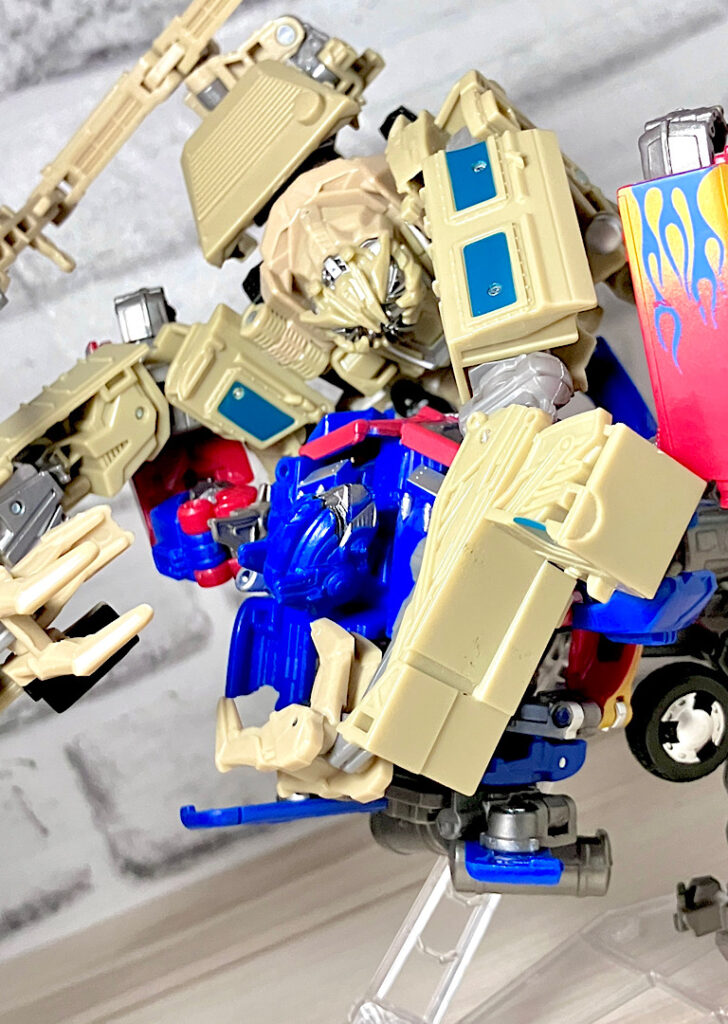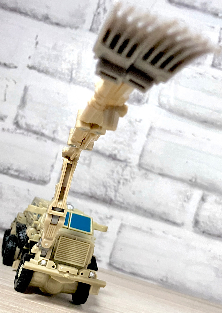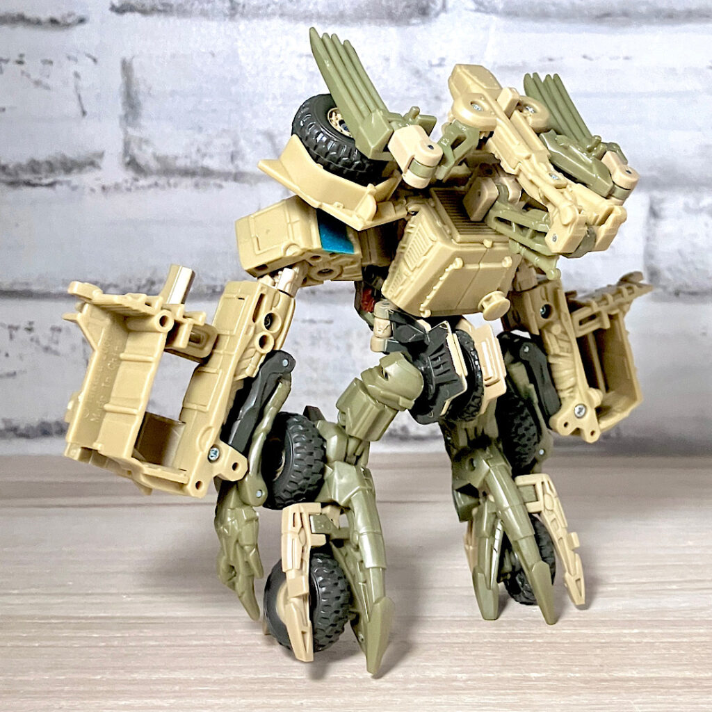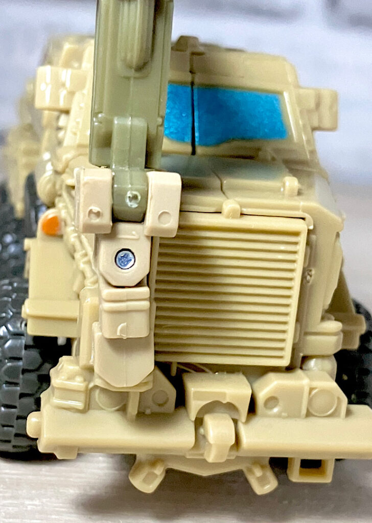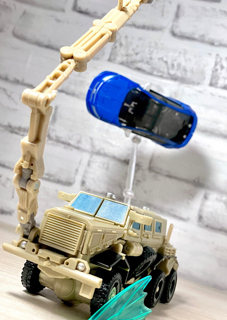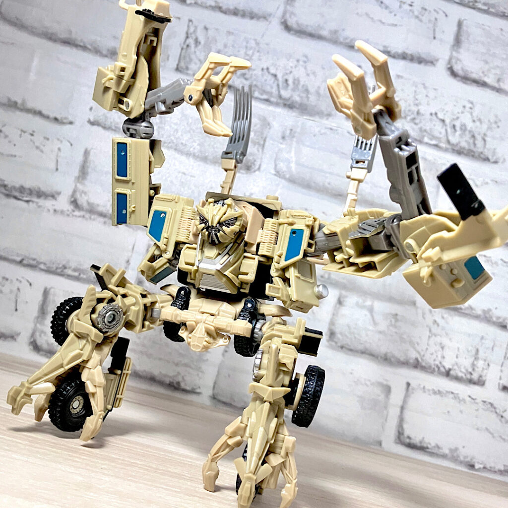 【ビークルモード】フォースプロテクション社の地雷除去特殊車両・バッファローに変形。映画トランスフォーマーの影響で認知度が爆上がりした車両のひとつでしょう。ベースが軍用車両のため、無骨でイカついシルエットがクールです。最大の特徴である地雷除去アームは実車よりも大きいのですが、これは映画でアレンジされた部分だったりします。