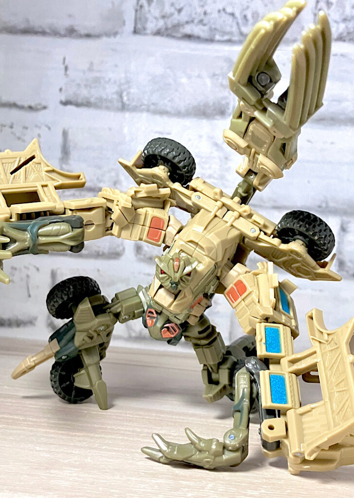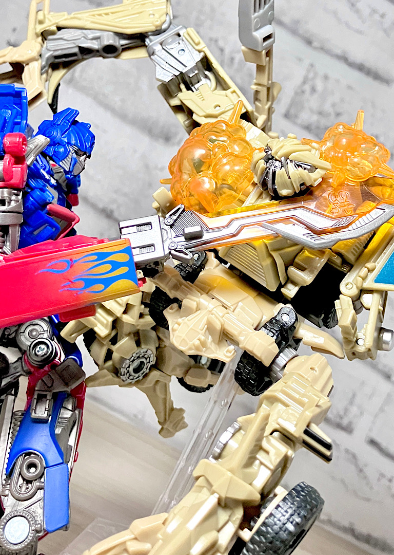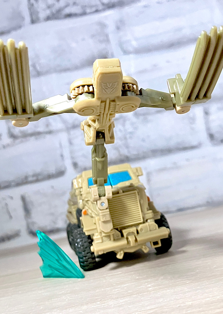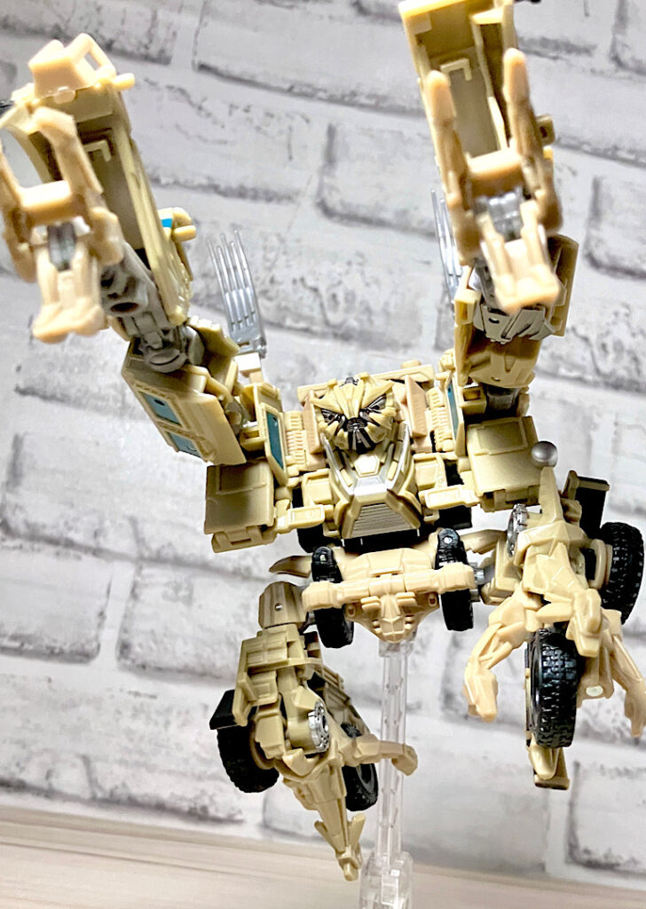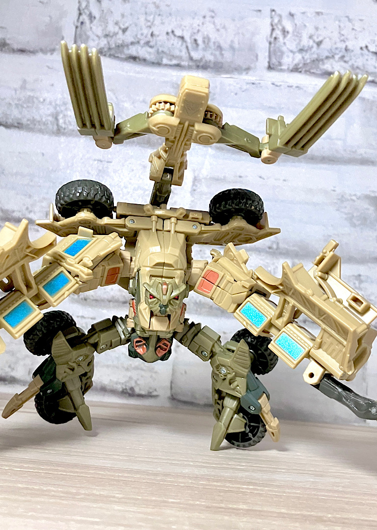 【ロボットモード】記念すべき実写1作目「トランスフォーマー」に登場するディセプティコン。出番は短いもののオプティマスとの濃い一騎打ちを披露したことで強烈に印象に残るキャラです。