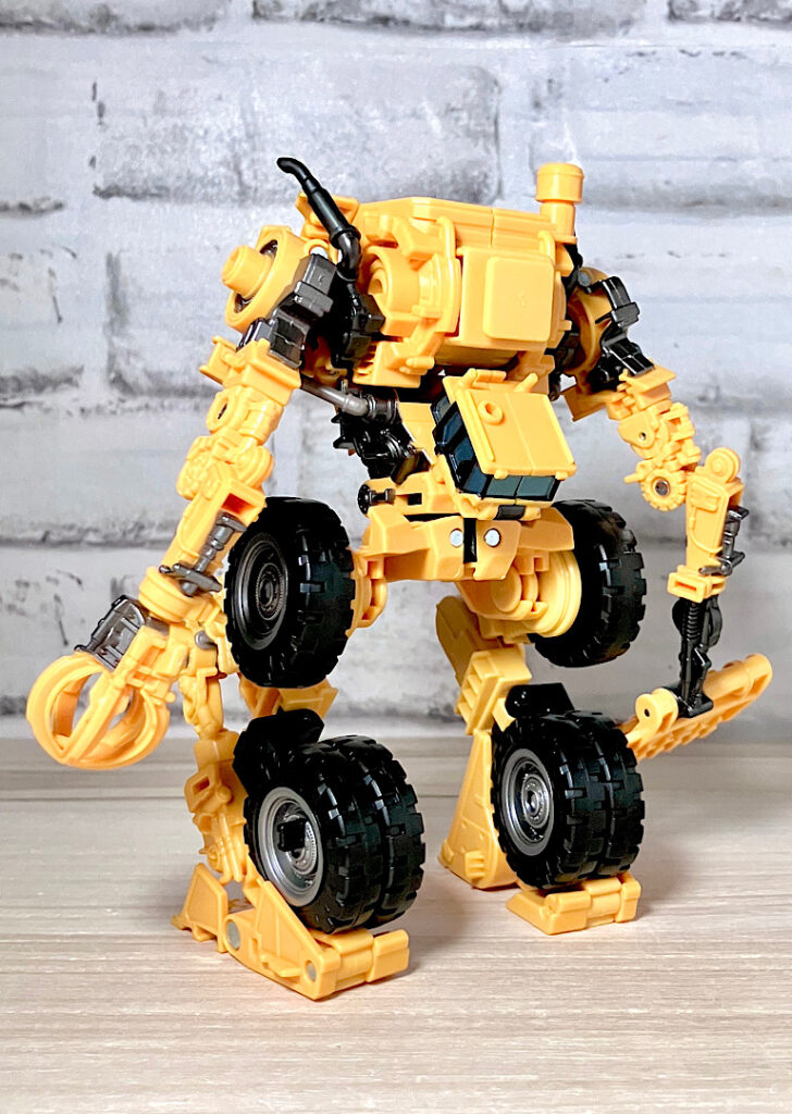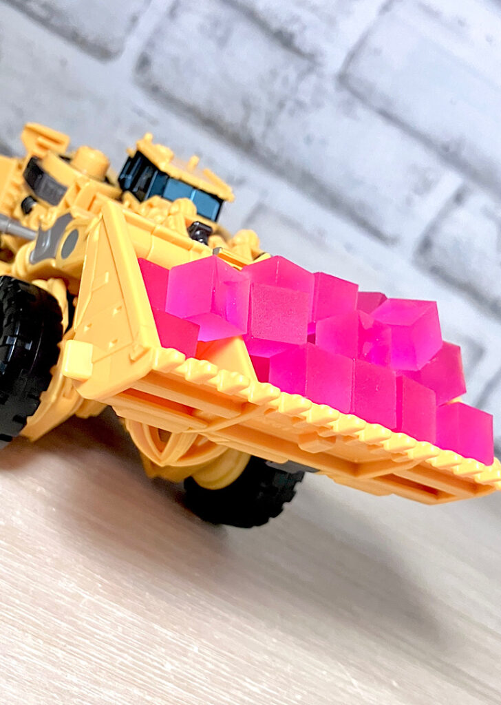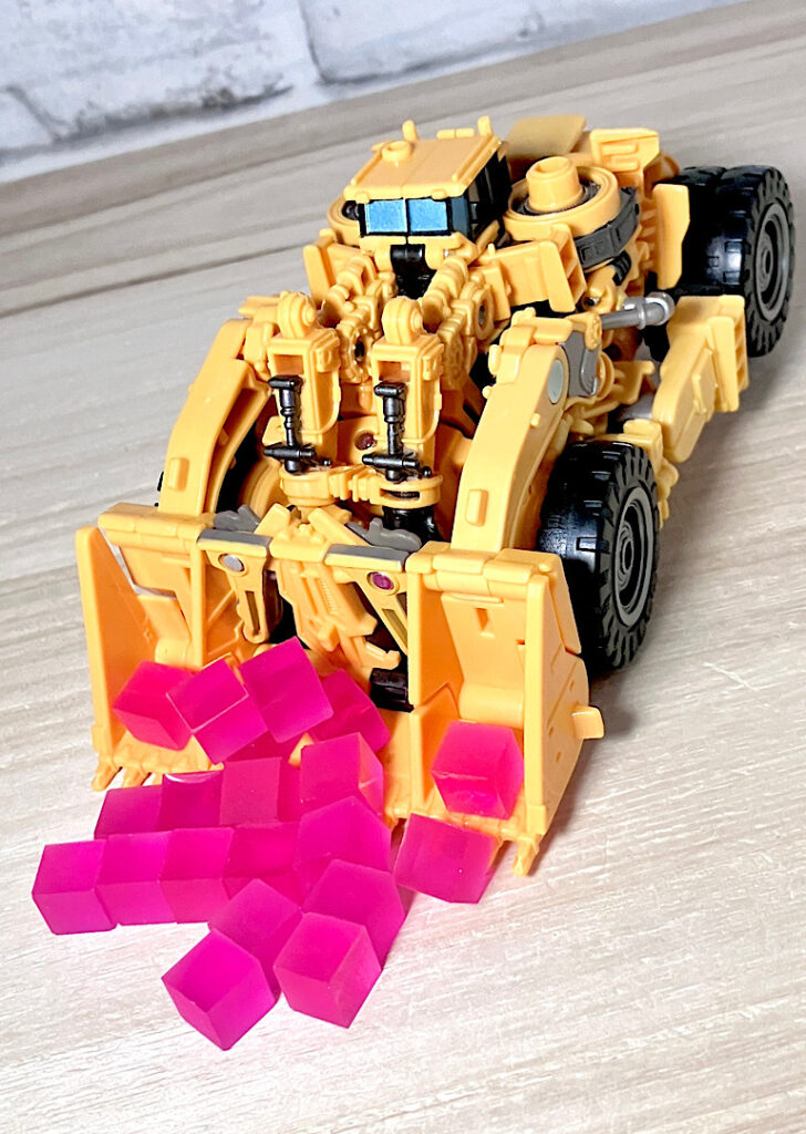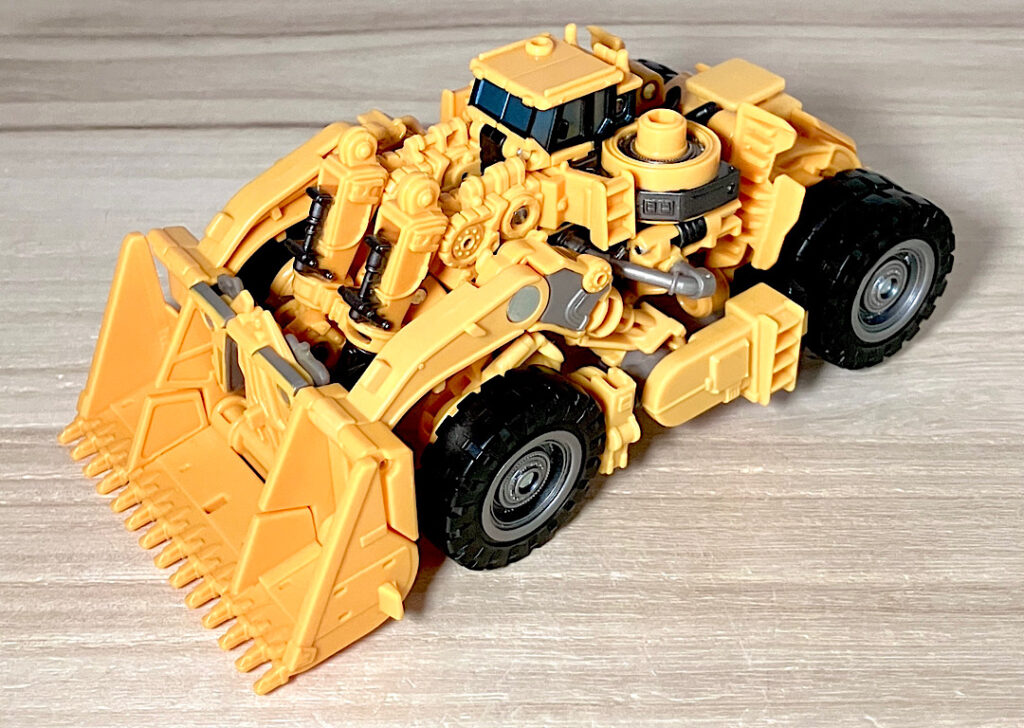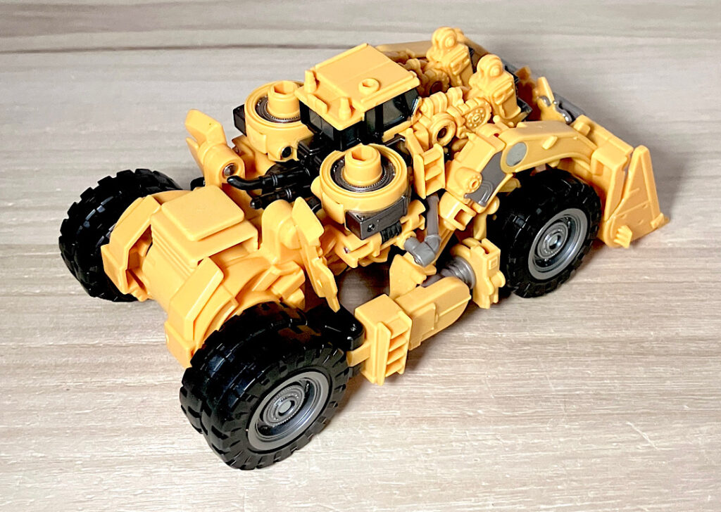 【ビークルモード】ホイルローダーに変形。ロボットモードがゴチャゴチャしていたせいか、細かいパーツが寄せ合わさったような情報量の多いデザインをしています。