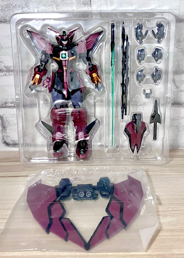 バンダイスピリッツの商品としては破格の値段(税込定価4,400円)ですが、ちゃんと挟み込みブリスターなのがすごい。ただしブリスターに収まりきらないアクセサリも袋入りで同梱されています。