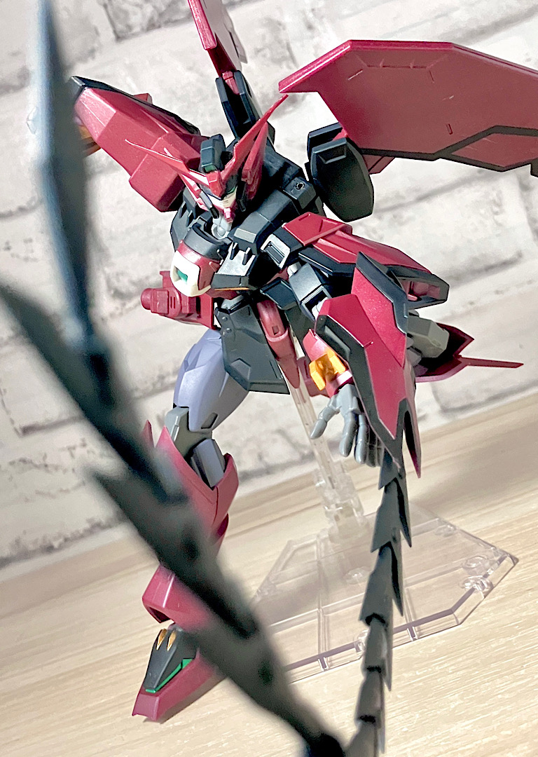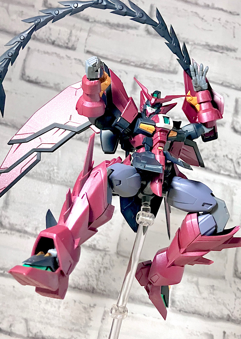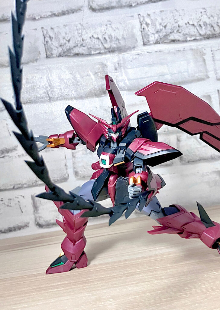 お安めの価格帯に関わらずシャープな造形と、アニメ作画を意識したような抑えめのディテールがいい感じ。ドラゴンや悪魔を思わせる禍々しくもスタイリッシュなシルエットがしつかりと再現されていますね。