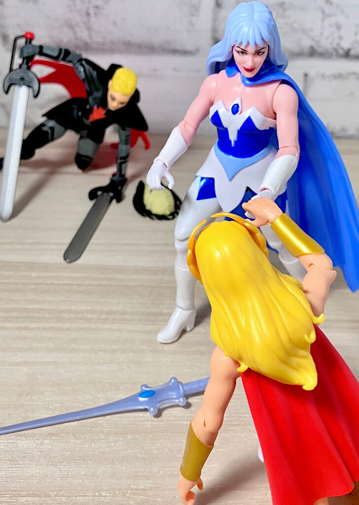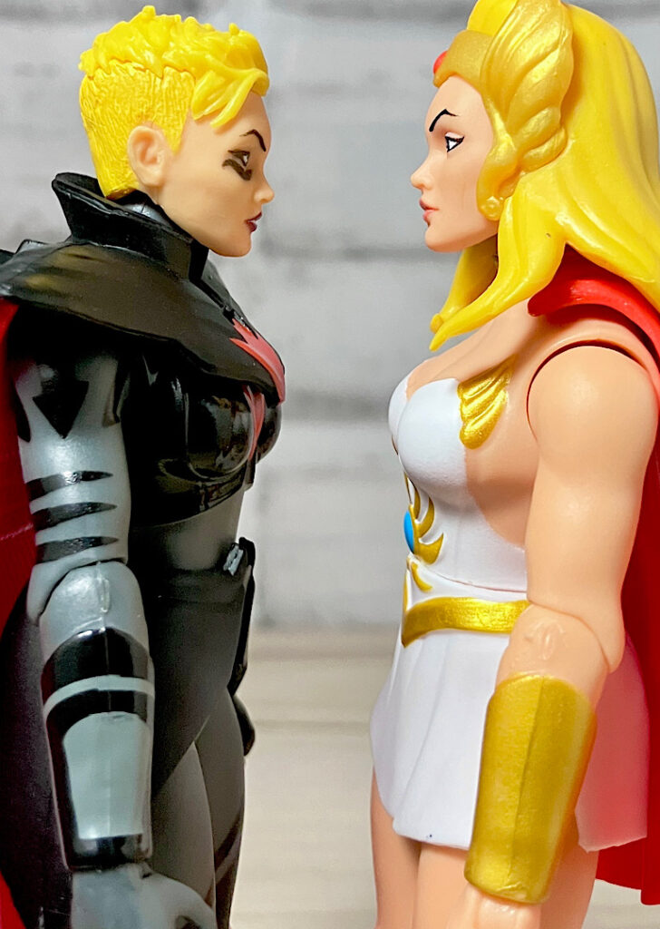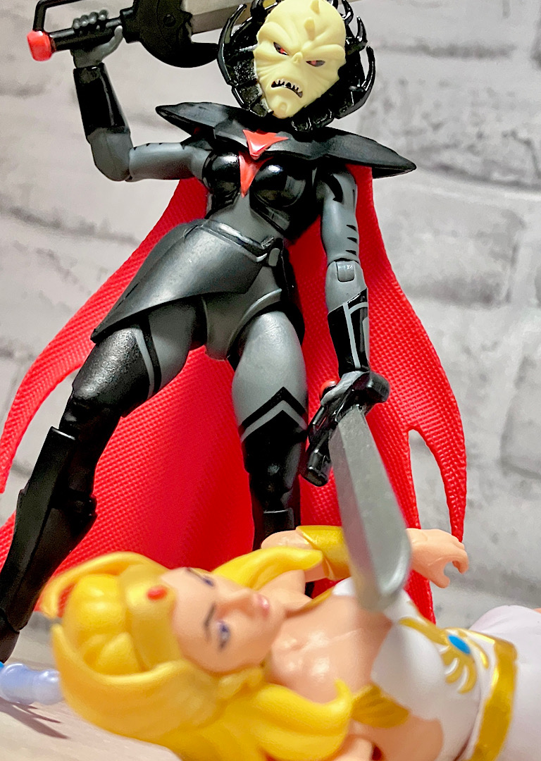 そして実はこのディスパラ、ただのエビルホードの将軍ではございません。シーラことアドーラの悪のペルソナ!もともとアドーラはホルダックに使える女戦士でしたが、剣の力で目覚め、反乱軍に加わったという経緯があります。つまりこのディスパラはホードにいたころのアドーラ、またはそのままホルダックに使えているユニバースでのアドーラということになります。まさかの重めの設定!