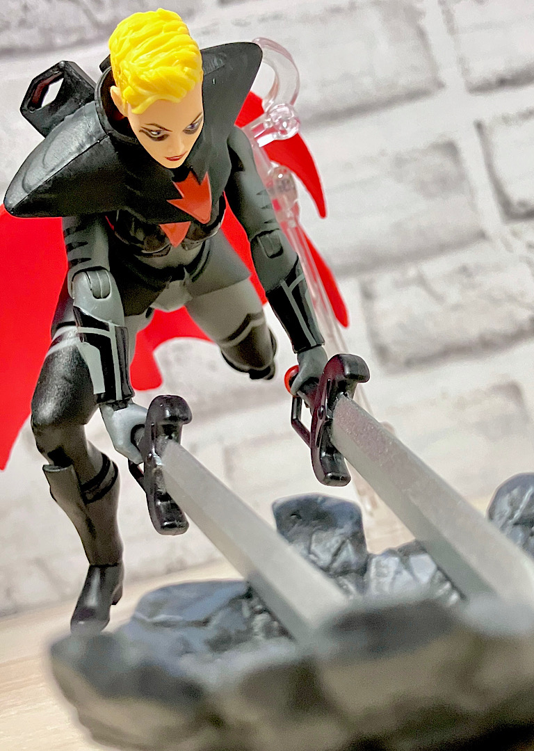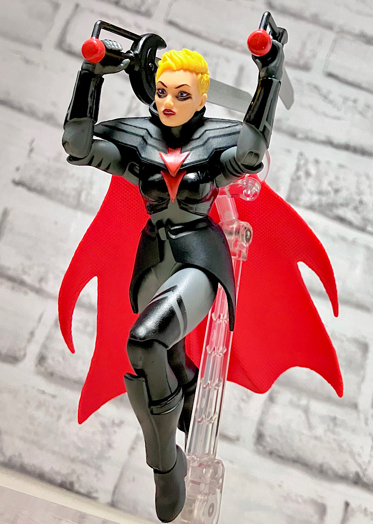 【フロント&リア】デザイン的にはまさにホルダックを女性風にリデザインした感じ。細身の女性素体が使われています。マントはアクセントが付いた特製ですね。軟質パーツです。