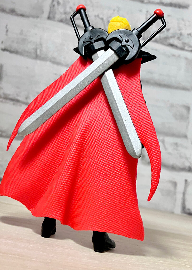 剣はどちらも背中にセットしておくことができます。